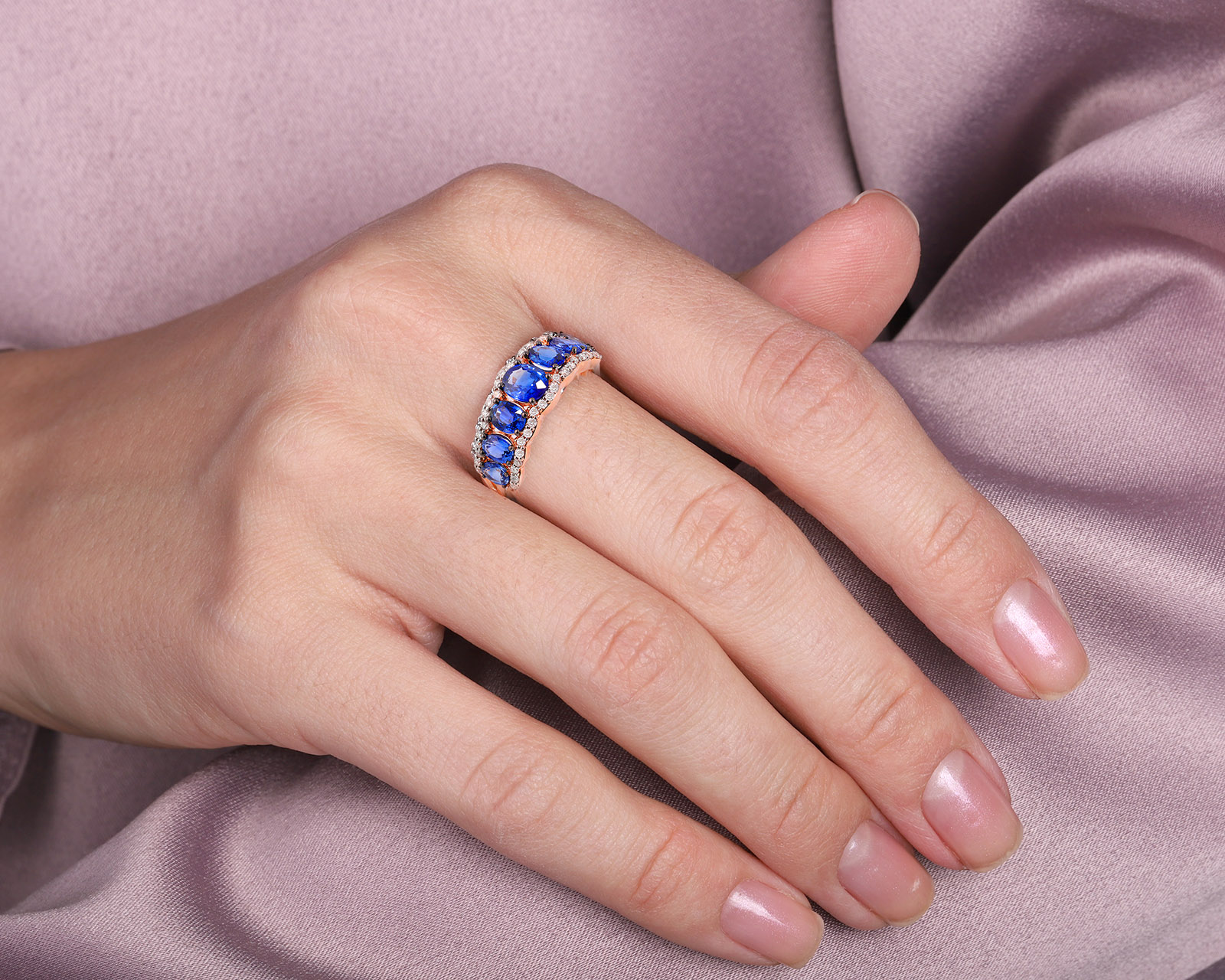 Золотое кольцо с сапфирами 2.50ct и бриллиантами 0.28ct