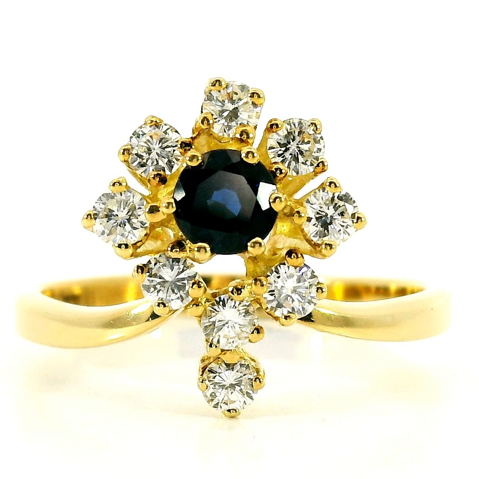 Притягательное золотое кольцо с сапфиром 0.45ct — настоящее произведение искусства, в котором воплощено не только мастерство ювелира, но и актуальные тренды. Это доказательство вашего изысканного вкуса, высокого статуса и яркий акцент в стильном образе. Вставка — 1 сапфир круглой огранки 0.45ct 4/2, 9 бриллиантов круглой огранки 0.63ct 3/5-3/6, а обрамлением служит золото 585 пробы, золото 750 пробы. Такое сочетание отлично смотрится и позволяет реализовывать самые необычные задумки вашего стиля. Размер ювелирного изделия — 20, бесплатно изменим на любой от 18.5 до 21, а общий вес — 5.19 г, и на пальце оно выглядит просто шикарно, сразу привлекая восхищенное внимание.