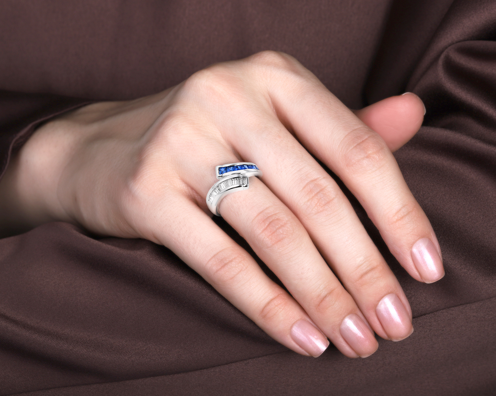 Золотое кольцо с сапфирами 2.15ct и бриллиантами 0.04ct