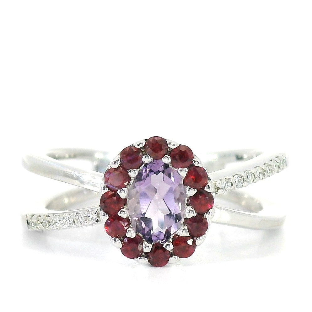 Золотое кольцо с аметистом 0.45ct и рубинами 0.36ct