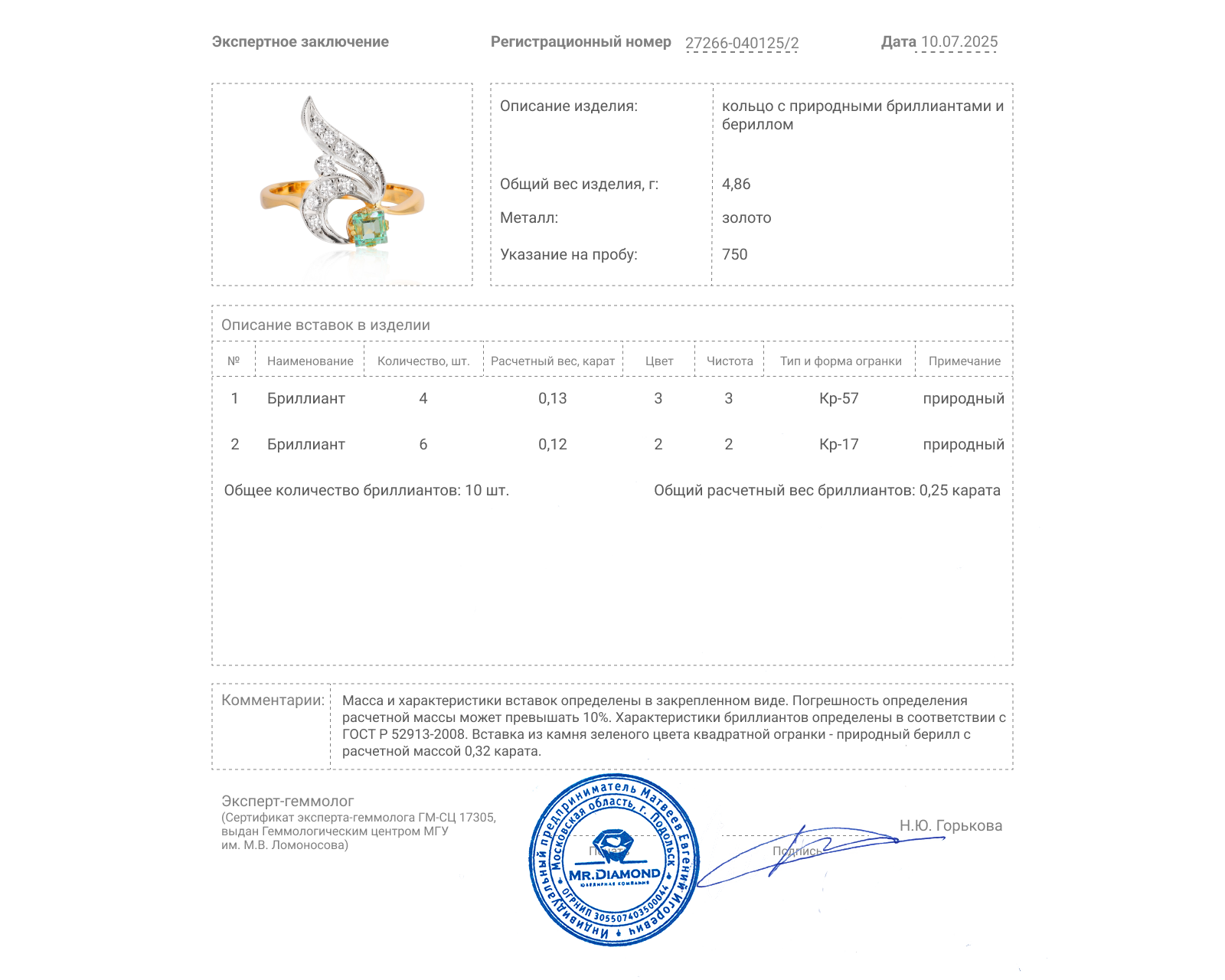 Оригинальное золотое кольцо ЭПЛ Якутские бриллианты 190225/2