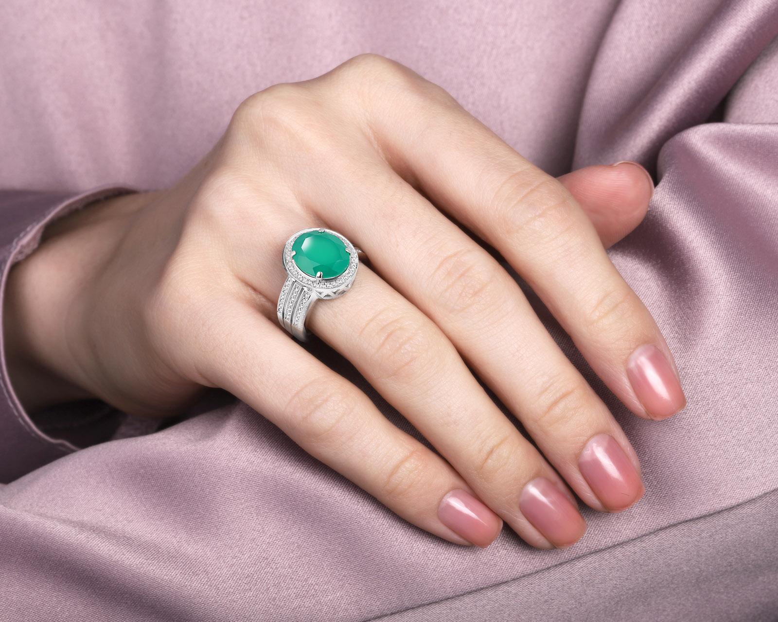 Золотое кольцо с халцедоном 4.40ct и бриллиантами 0.22ct