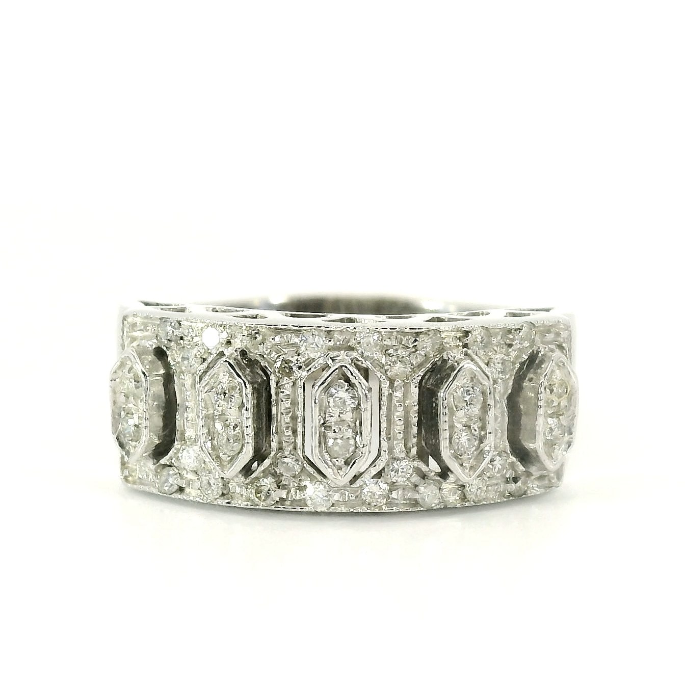 Золотое кольцо с бриллиантами 0.27ct — настоящее произведение искусства, в котором воплощено не только мастерство ювелира, но и актуальные тренды. Это доказательство вашего изысканного вкуса, высокого статуса и яркий акцент в стильном образе. Вставка — 34 бриллианта круглой огранки 0.27ct 3/6-4/6, а обрамлением служит золото 750 пробы. Такое сочетание отлично смотрится и позволяет реализовывать самые необычные задумки вашего стиля. Размер ювелирного изделия — 20.25, а общий вес — 9.89 г, и на пальце оно выглядит просто шикарно, сразу привлекая восхищенное внимание.