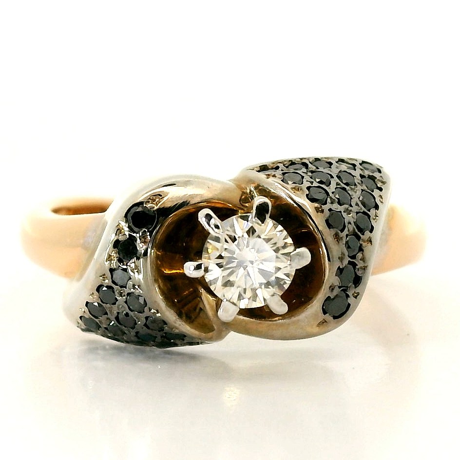 Золотое кольцо с бриллиантами 0.36ct — настоящее произведение искусства, в котором воплощено не только мастерство ювелира, но и актуальные тренды. Это доказательство вашего изысканного вкуса, высокого статуса и яркий акцент в стильном образе. Вставка — 1 бриллиант круглой огранки 0.19ct 5/5, 34 черных бриллианта круглой огранки 0.17ct 7/9, а обрамлением служит золото 585 пробы. Такое сочетание отлично смотрится и позволяет реализовывать самые необычные задумки вашего стиля. Размер ювелирного изделия — 16, бесплатно изменим на любой от 15 до 17, а общий вес — 4.01 г, и на пальце оно выглядит просто шикарно, сразу привлекая восхищенное внимание.