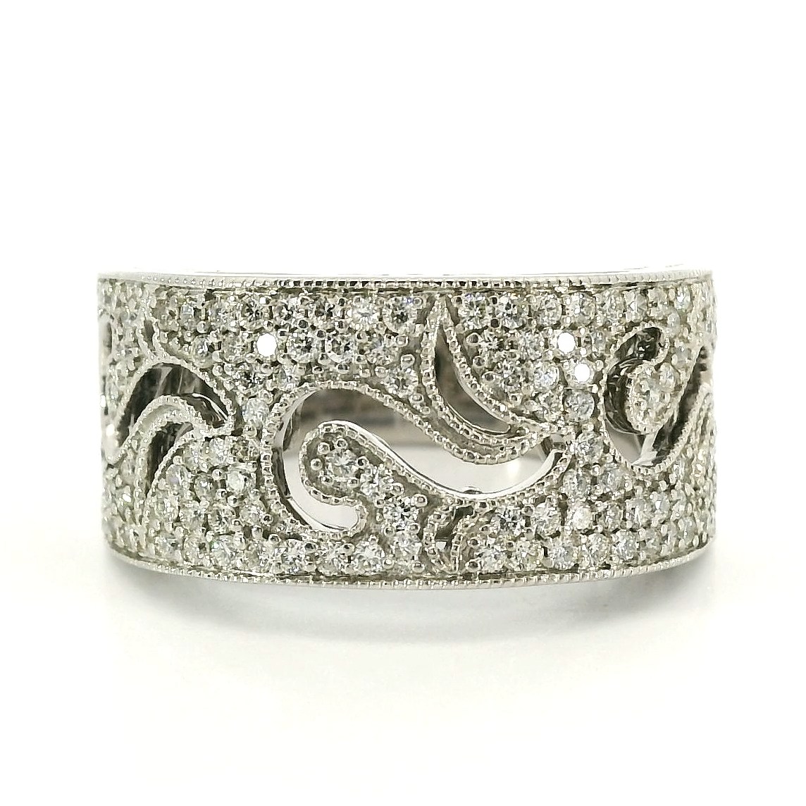 Золотое кольцо с бриллиантами 0.58ct — настоящее произведение искусства, в котором воплощено не только мастерство ювелира, но и актуальные тренды. Это доказательство вашего изысканного вкуса, высокого статуса и яркий акцент в стильном образе. Вставка — 111 бриллиантов круглой огранки 0.58ct 3/4-4/5, а обрамлением служит золото 585 пробы. Такое сочетание отлично смотрится и позволяет реализовывать самые необычные задумки вашего стиля. Размер ювелирного изделия — 18.25, а общий вес — 8.91 г, и на пальце оно выглядит просто шикарно, сразу привлекая восхищенное внимание.