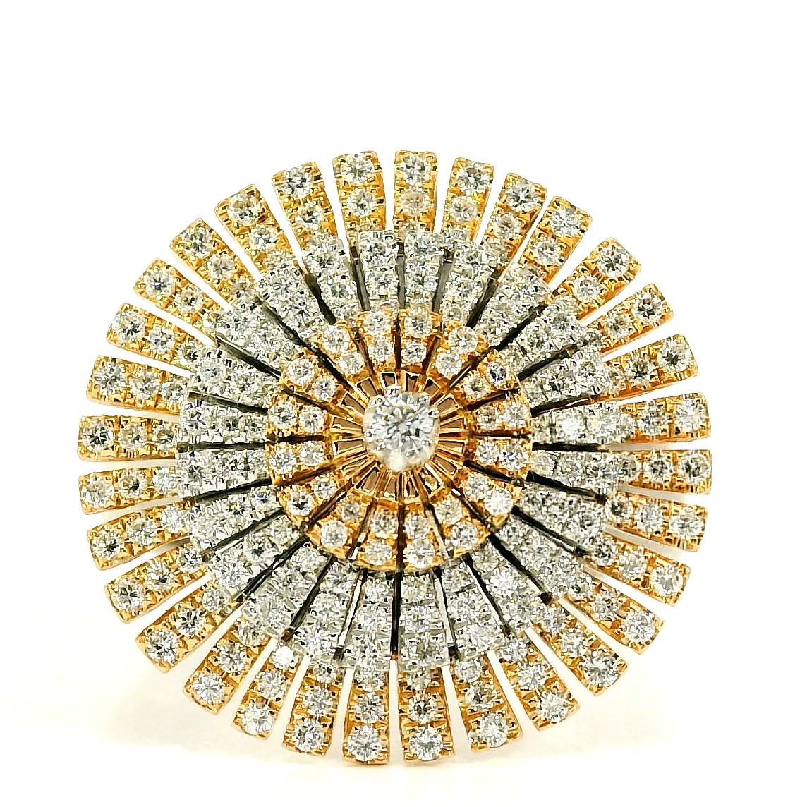 Золотое кольцо с бриллиантами 0.68ct — настоящее произведение искусства, в котором воплощено не только мастерство ювелира, но и актуальные тренды. Это доказательство вашего изысканного вкуса, высокого статуса и яркий акцент в стильном образе. Вставка — 201 бриллиант круглой огранки 0.68ct 3/3-3/5, а обрамлением служит золото 585 пробы. Такое сочетание отлично смотрится и позволяет реализовывать самые необычные задумки вашего стиля. Размер ювелирного изделия — 17.5, бесплатно изменим на любой от 16.5 до 18.5, а общий вес — 10.56 г, и на пальце оно выглядит просто шикарно, сразу привлекая восхищенное внимание.