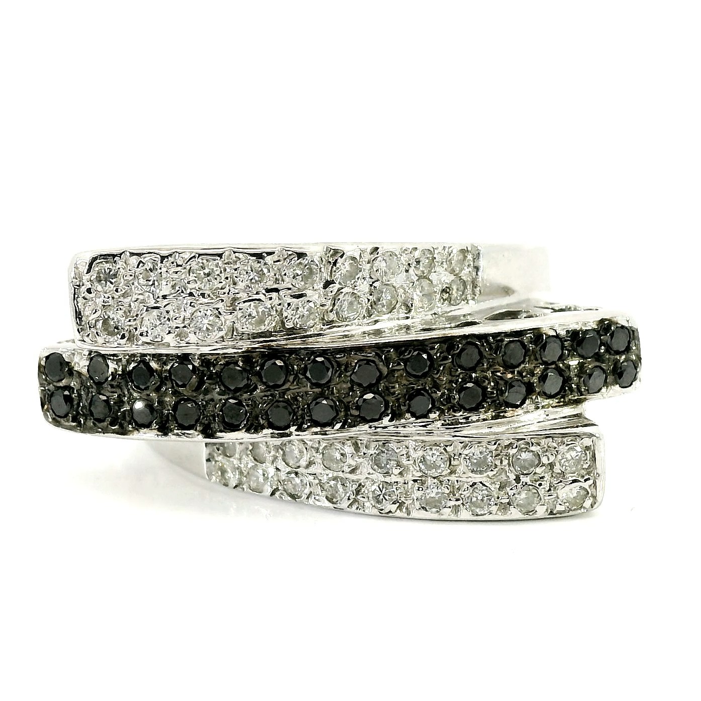 Золотое кольцо с бриллиантами 0.76ct — настоящее произведение искусства, в котором воплощено не только мастерство ювелира, но и актуальные тренды. Это доказательство вашего изысканного вкуса, высокого статуса и яркий акцент в стильном образе. Вставка — 36 бриллиантов круглой огранки 0.43ct 3/5-4/6, 28 черных бриллиантов круглой огранки 0.33ct 7/9, а обрамлением служит золото 585 пробы. Такое сочетание отлично смотрится и позволяет реализовывать самые необычные задумки вашего стиля. Размер ювелирного изделия — 17.5, а общий вес — 12.57 г, и на пальце оно выглядит просто шикарно, сразу привлекая восхищенное внимание.