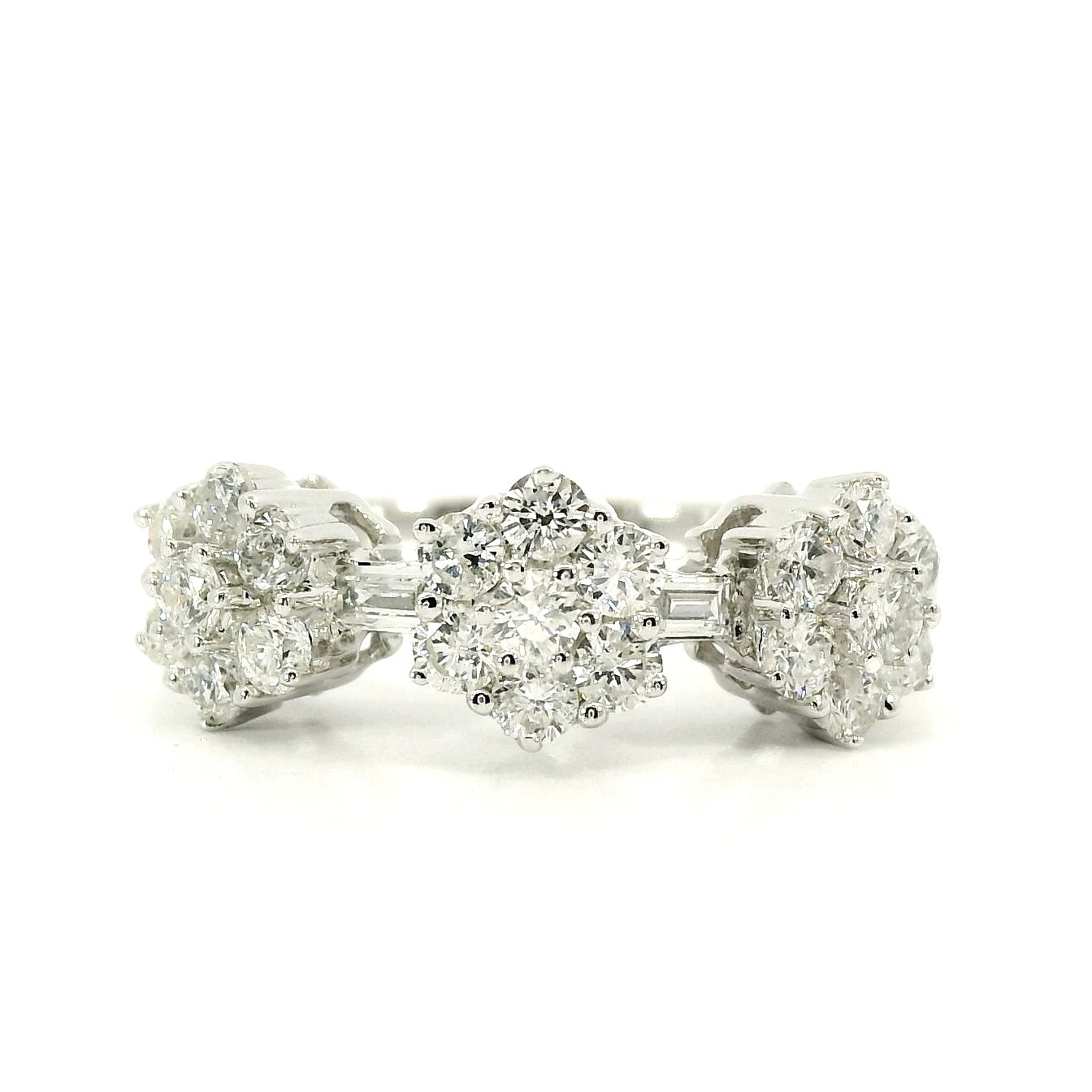 Золотое кольцо с бриллиантами 0.92ct — настоящее произведение искусства, в котором воплощено не только мастерство ювелира, но и актуальные тренды. Это доказательство вашего изысканного вкуса, высокого статуса и яркий акцент в стильном образе. Вставка — 21 бриллиант круглой огранки 0.77ct 3/5-3/6, 4 бриллианта огранки "прямоугольный багет" 0.15ct 3/4, а обрамлением служит золото 750 пробы. Такое сочетание отлично смотрится и позволяет реализовывать самые необычные задумки вашего стиля. Размер ювелирного изделия — 17, бесплатно изменим на любой от 16 до 18, а общий вес — 3.52 г, и на пальце оно выглядит просто шикарно, сразу привлекая восхищенное внимание.