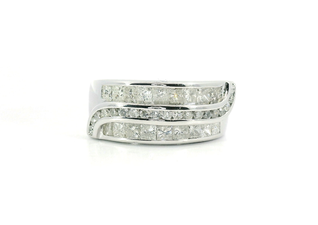 Золотое кольцо с бриллиантами 1.36ct — настоящее произведение искусства, в котором воплощено не только мастерство ювелира, но и актуальные тренды. Это доказательство вашего изысканного вкуса, высокого статуса и яркий акцент в стильном образе. Вставка — 19 бриллиантов круглой огранки 0.22ct 3/6-3/7, 18 бриллиантов огранки "принцесса" 1.14ct 3/6-3/7, а обрамлением служит золото 585 пробы. Такое сочетание отлично смотрится и позволяет реализовывать самые необычные задумки вашего стиля. Размер ювелирного изделия — 17.25, а общий вес — 7.55 г, и на пальце оно выглядит просто шикарно, сразу привлекая восхищенное внимание.