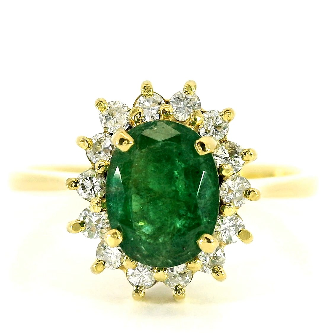 Золотое кольцо с изумрудом 1.17ct и бриллиантами 0.28ct — настоящее произведение искусства, в котором воплощено не только мастерство ювелира, но и актуальные тренды. Это доказательство вашего изысканного вкуса, высокого статуса и яркий акцент в стильном образе. Вставка — 1 изумруд овальной огранки 1.17ct 4/Г3, 14 бриллиантов круглой огранки 0.28ct 3/4-3/5, а обрамлением служит золото 750 пробы. Такое сочетание отлично смотрится и позволяет реализовывать самые необычные задумки вашего стиля. Размер ювелирного изделия — 18.25, бесплатно изменим на любой от 17.25 до 19.25, а общий вес — 4.29 г, и на пальце оно выглядит просто шикарно, сразу привлекая восхищенное внимание.