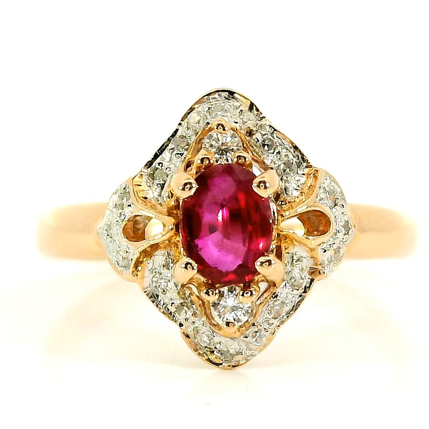 Золотое кольцо с рубином 0.33ct и бриллиантами 0.12ct — настоящее произведение искусства, в котором воплощено не только мастерство ювелира, но и актуальные тренды. Это доказательство вашего изысканного вкуса, высокого статуса и яркий акцент в стильном образе. Вставка — 1 рубин овальной огранки 0.33ct 4/4, 2 бриллианта круглой огранки 0.04ct 4/5, 20 бриллиантов круглой огранки 0.08ct 2/2-2/3 Кр-17, а обрамлением служит золото 585 пробы. Такое сочетание отлично смотрится и позволяет реализовывать самые необычные задумки вашего стиля. Размер ювелирного изделия — 16, бесплатно изменим на любой от 15 до 17.5, а общий вес — 2.56 г, и на пальце оно выглядит просто шикарно, сразу привлекая восхищенное внимание.