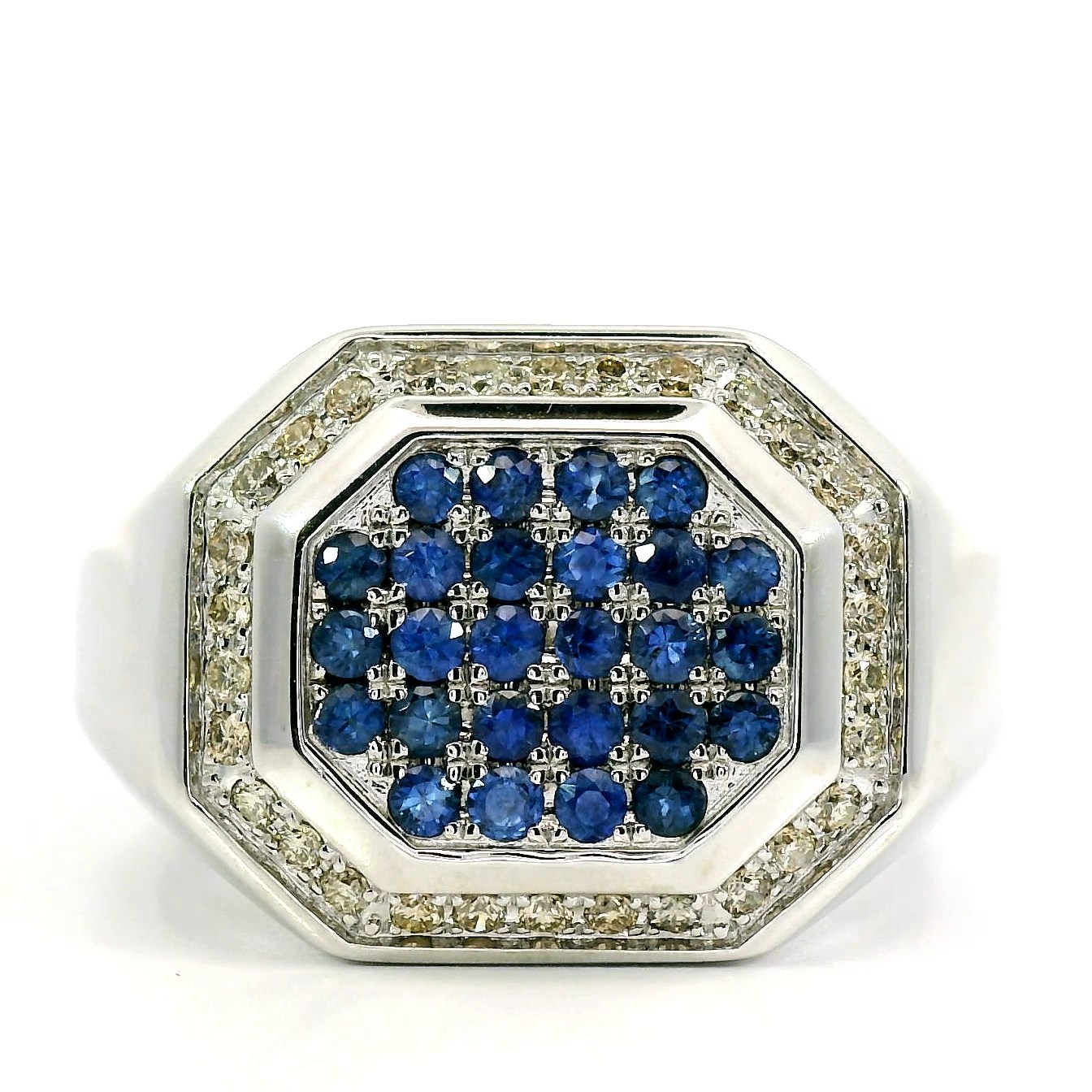 Солидное золотое кольцо с бриллиантами 0.91ct и сапфирами 0.41ct 070819/27