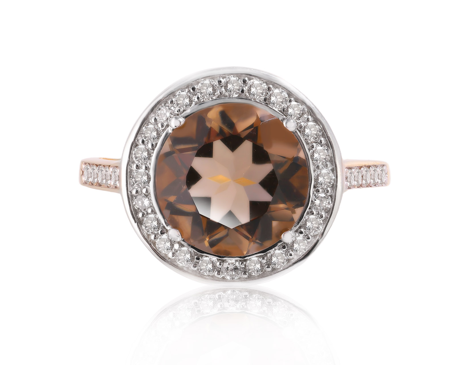 Золотое кольцо с дымчатым кварцем 3.00ct