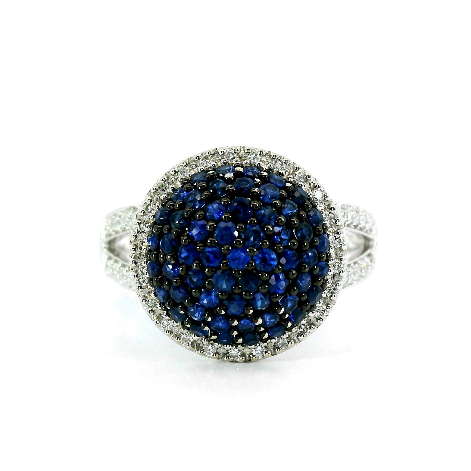 Золотое кольцо с сапфирами 0.96ct и бриллиантами 0.32ct — настоящее произведение искусства, в котором воплощено не только мастерство ювелира, но и актуальные тренды. Это доказательство вашего изысканного вкуса, высокого статуса и яркий акцент в стильном образе. Вставка — 56 сапфиров круглой огранки 0.96ct 4/2-4/3, 81 бриллиант круглой огранки 0.32ct 3/4-3/5, а обрамлением служит золото 585 пробы. Такое сочетание отлично смотрится и позволяет реализовывать самые необычные задумки вашего стиля. Размер ювелирного изделия — 17, бесплатно изменим на любой от 16 до 18, а общий вес — 5.2 г, и на пальце оно выглядит просто шикарно, сразу привлекая восхищенное внимание.