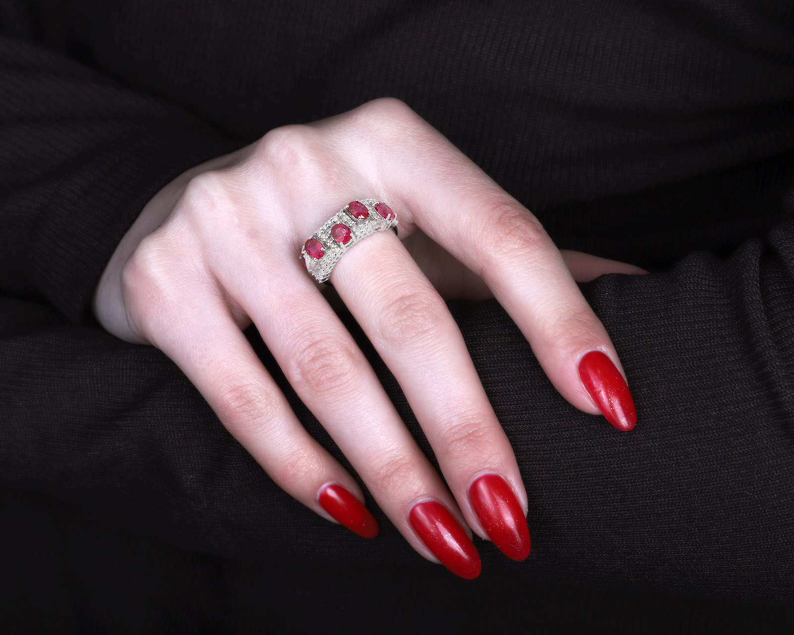 Золотое кольцо с рубинами 1.40ct и бриллиантами 0.26ct