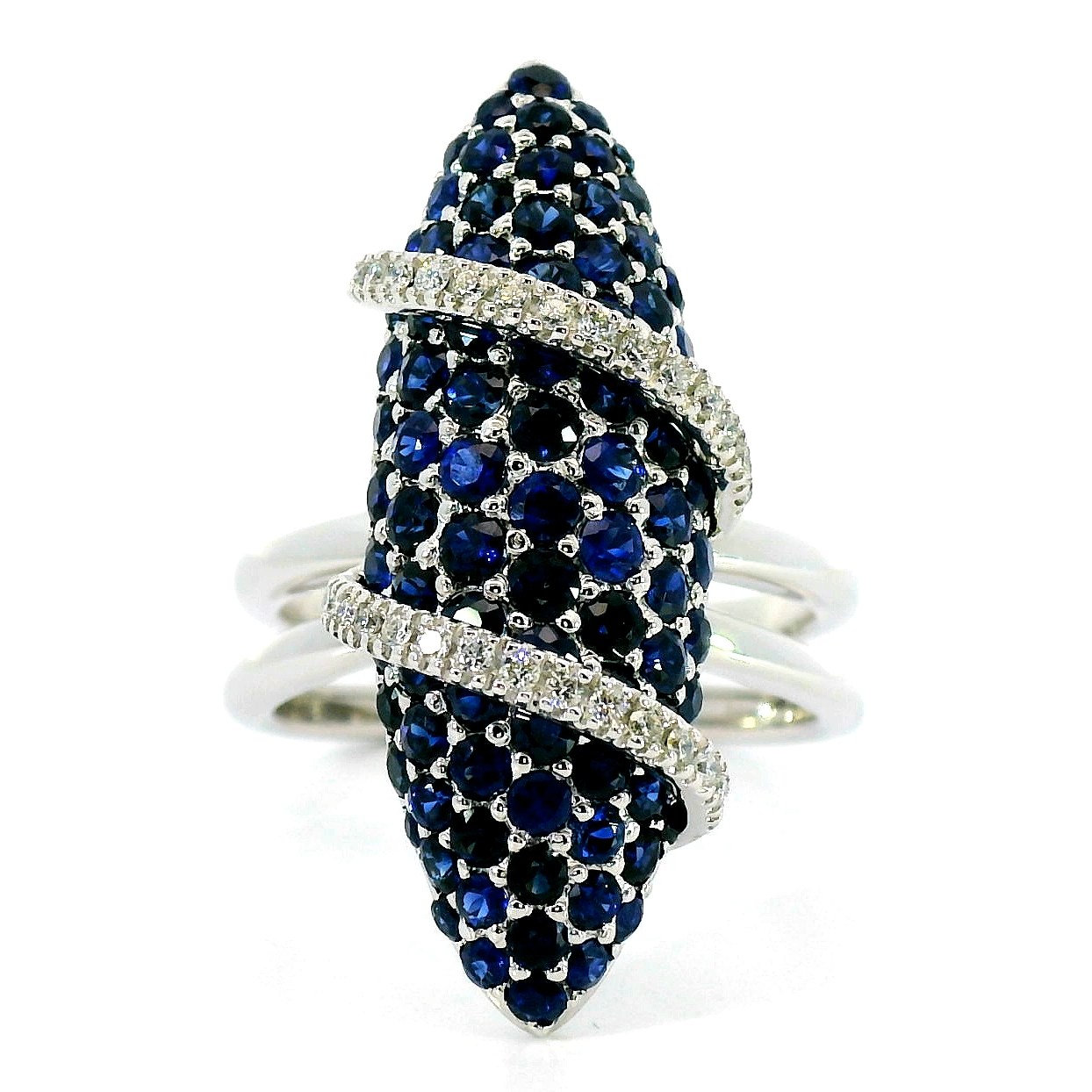 Золотое кольцо с сапфирами 2.80ct и бриллиантами 0.17ct — настоящее произведение искусства, в котором воплощено не только мастерство ювелира, но и актуальные тренды. Это доказательство вашего изысканного вкуса, высокого статуса и яркий акцент в стильном образе. Вставка — 89 сапфиров круглой огранки 2.80ct 2/2-3/4, 30 бриллиантов круглой огранки 0.17ct 3/3-4/4, а обрамлением служит золото 750 пробы. Такое сочетание отлично смотрится и позволяет реализовывать самые необычные задумки вашего стиля. Размер ювелирного изделия — 17.5, бесплатно изменим на любой от 16.5 до 18.5, а общий вес — 9.6 г, и на пальце оно выглядит просто шикарно, сразу привлекая восхищенное внимание.