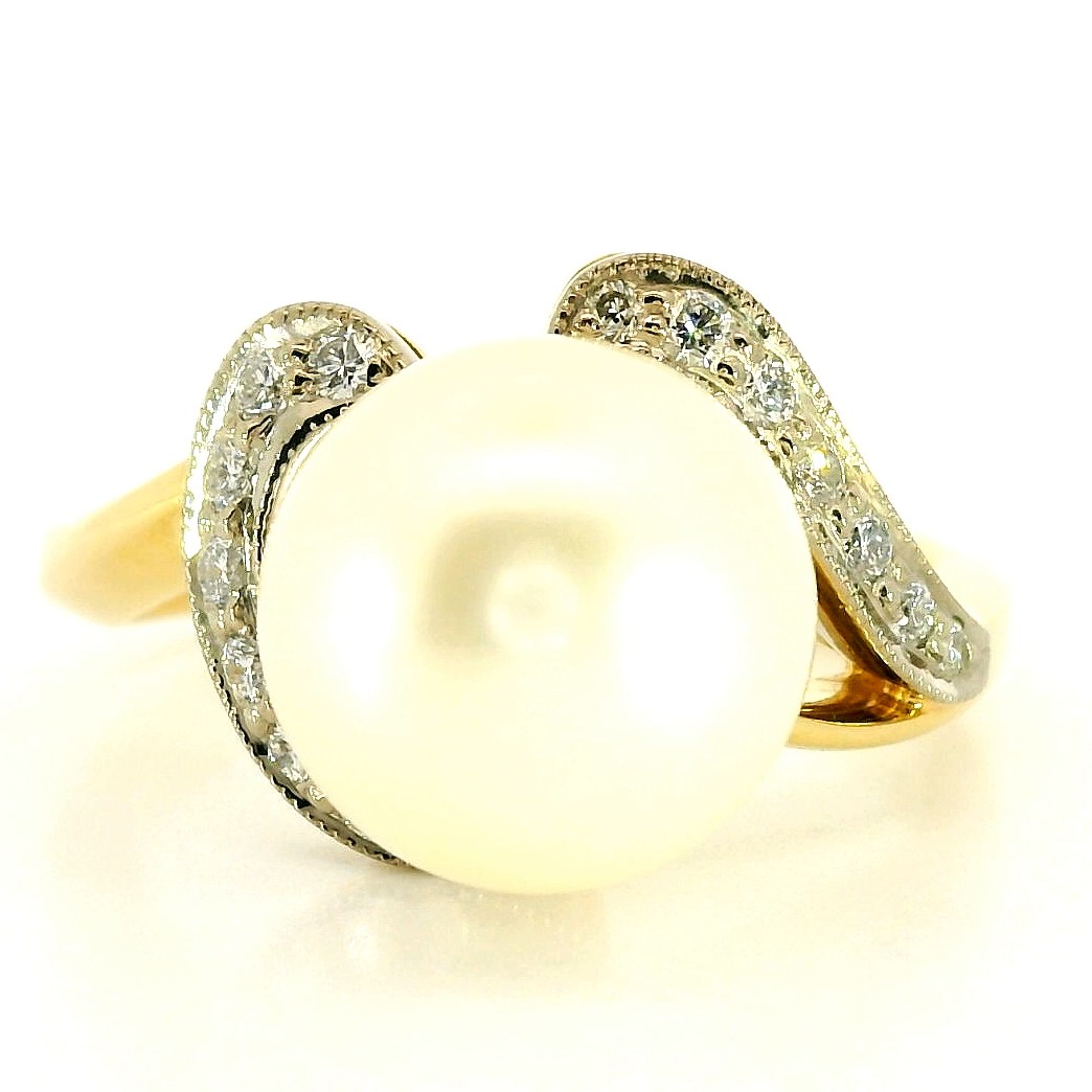 Золотое кольцо с жемчугом 8.20 мм и бриллиантами 0.32ct 090625/3
