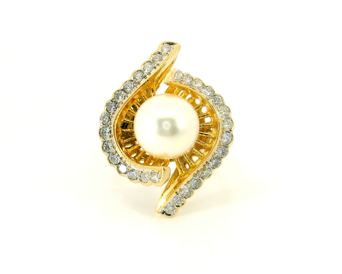 Золотое кольцо с жемчугом и бриллиантами 0.22ct 190724/1