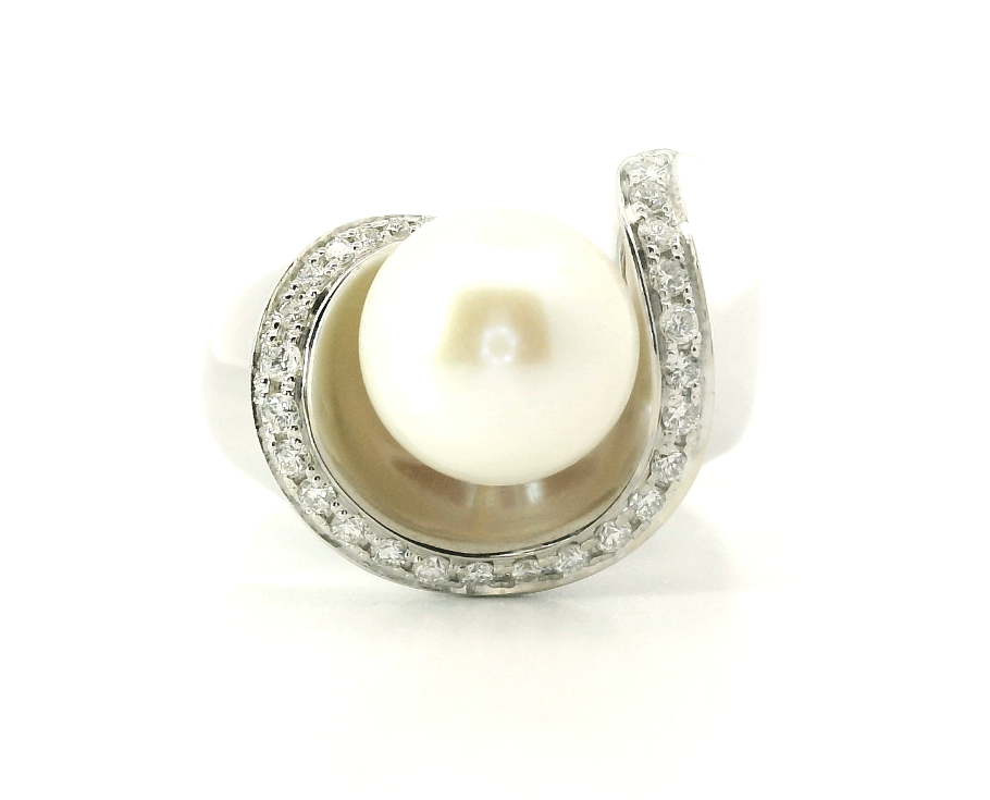 Золотое кольцо с жемчугом 14.00 мм и бриллиантами 0.18ct 070525/1