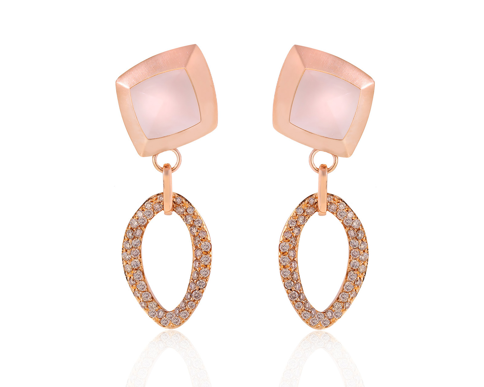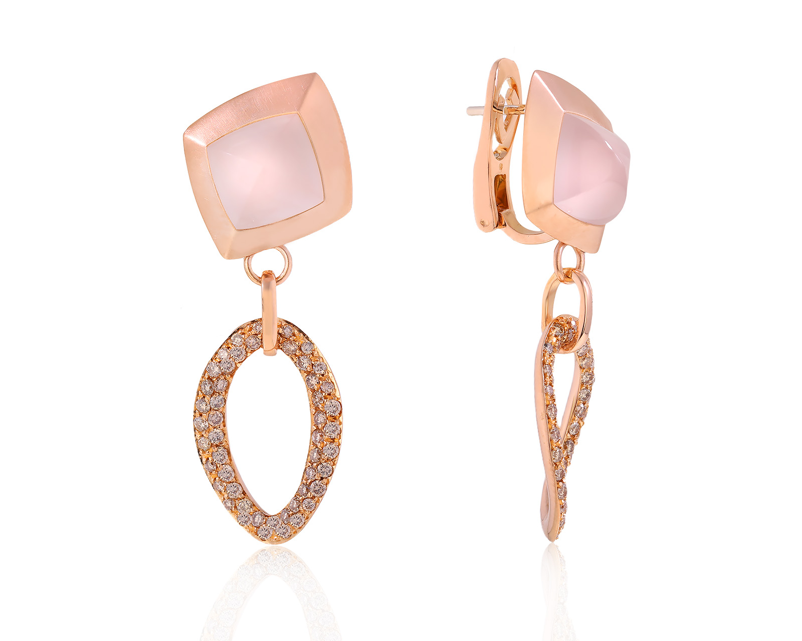 Оригинальные золотые серьги с розовым кварцем 8.10ct Valente 080925/11