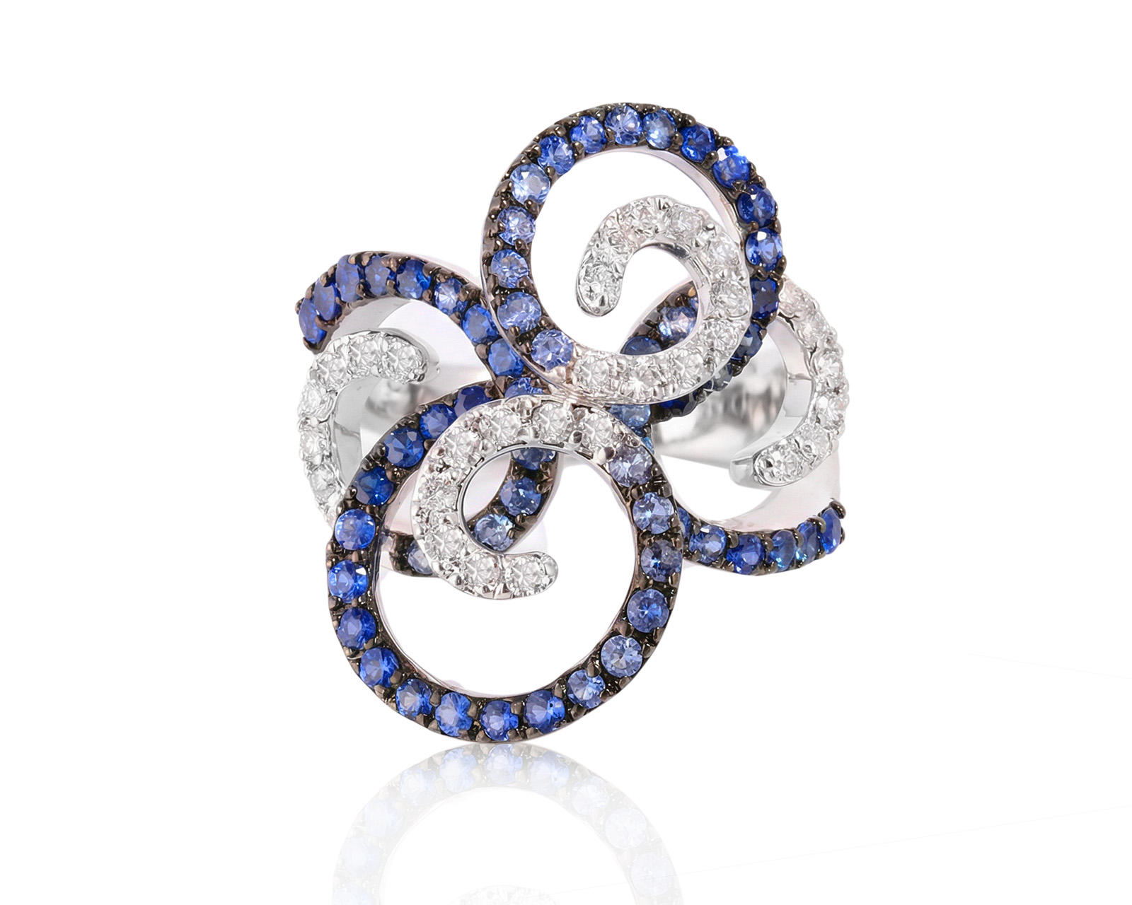 Золотое кольцо с сапфирами 1.25ct и бриллиантами 0.46ct