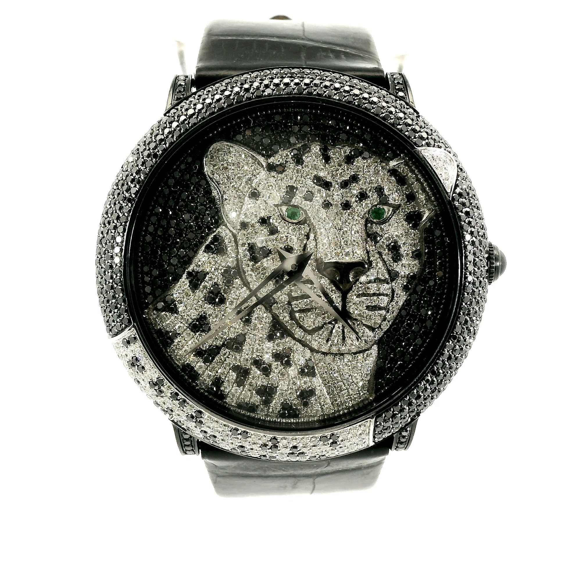 Представляем вашему вниманию оригинальные стальные часы с бесцветными 2.40ct и черными 4.10ct бриллиантами и тсаворитами 0.04ct от всемирно известного бренда Roberto Bravo.