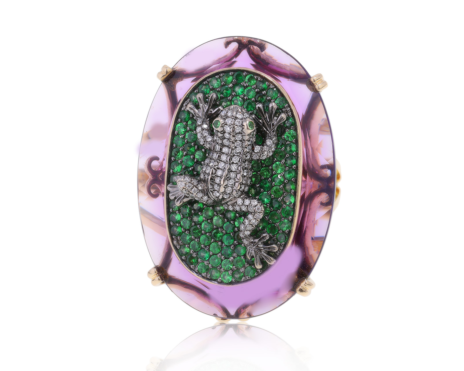 Золотое кольцо с аметистом 21.15ct и тсаворитами 3.04ct