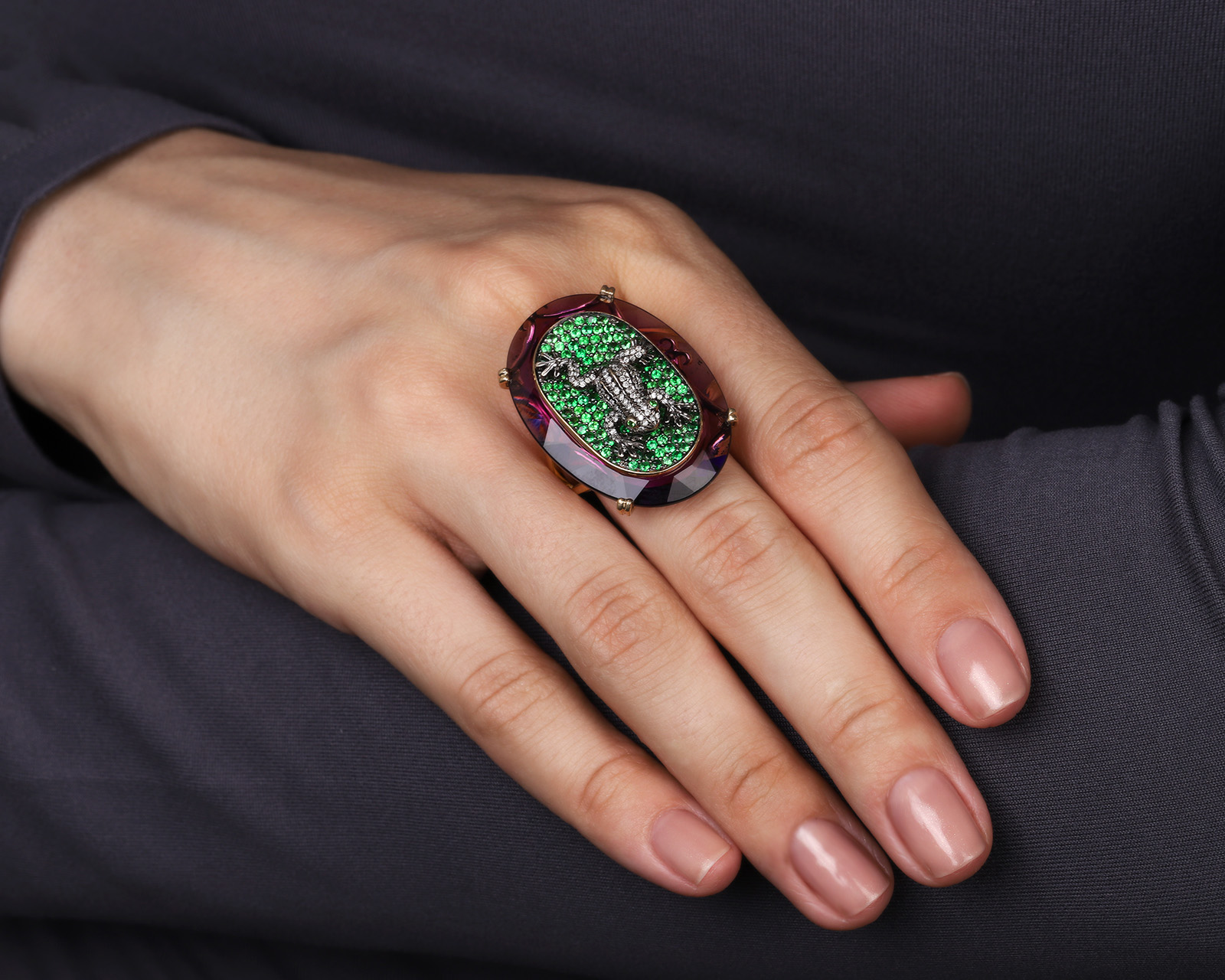Золотые украшения с бриллиантами и оригинальные брендовые изделия в анималистическом стиле.