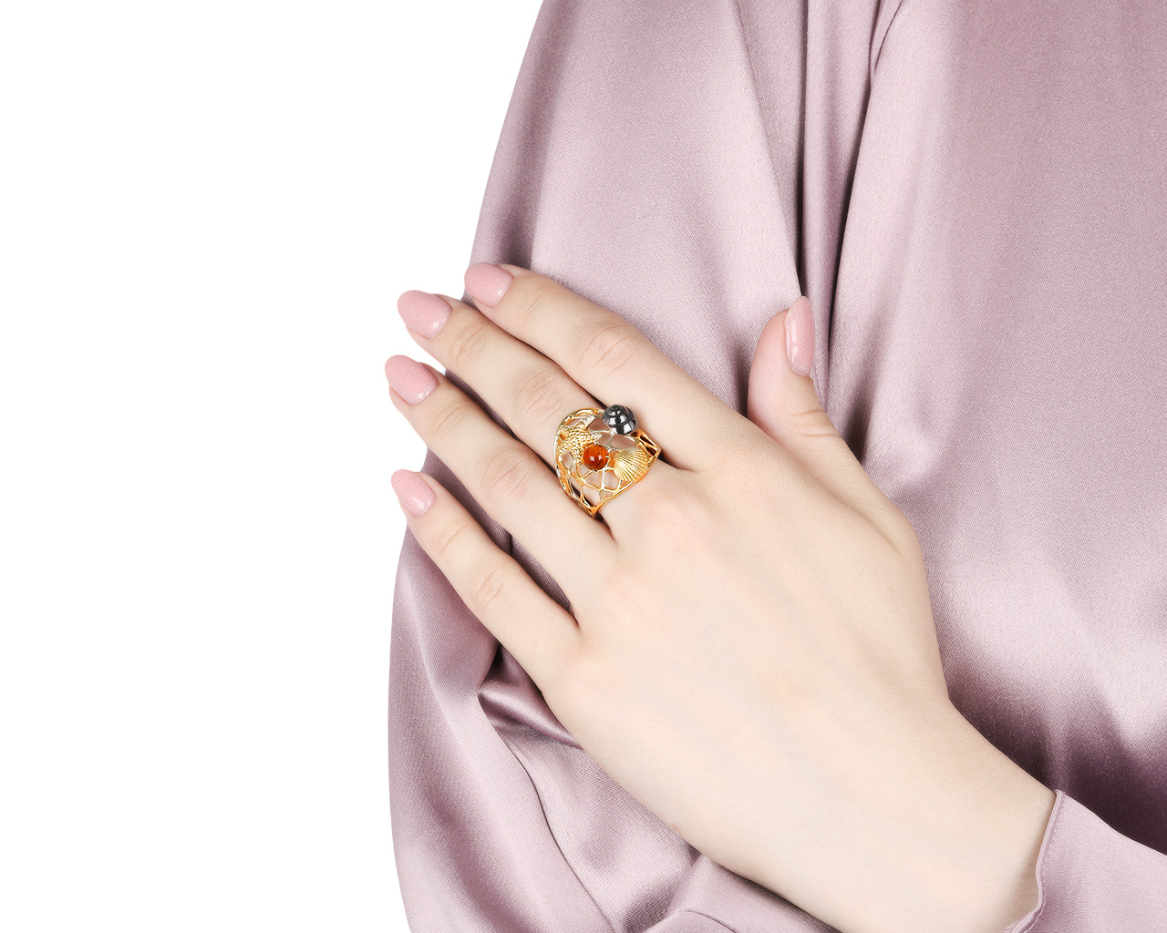 Оригинальное золотое кольцо с черной вставкой Baraka