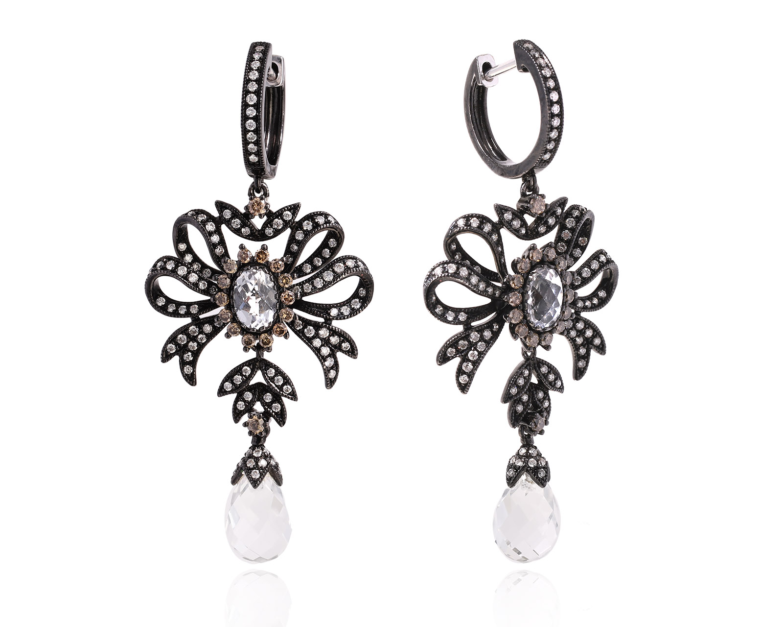 Золотые серьги с хрусталем 3.90ct и бриллиантами 1.19ct