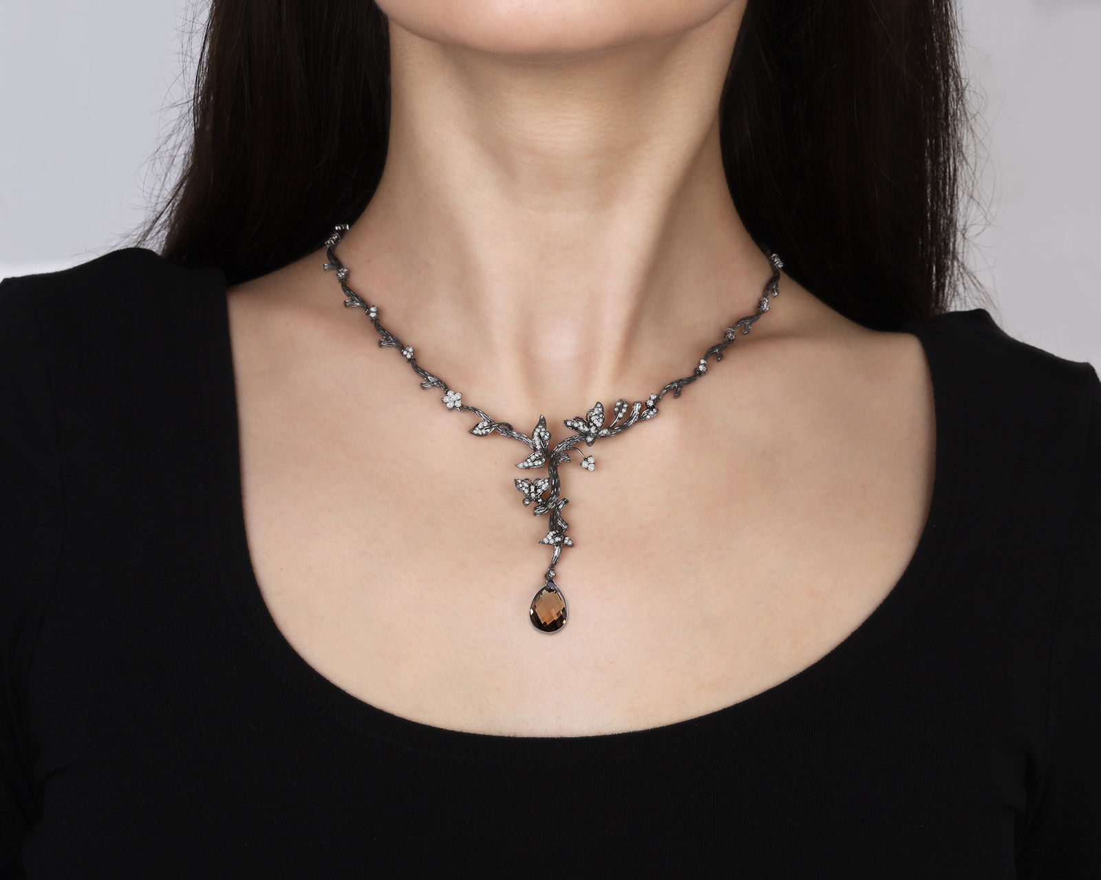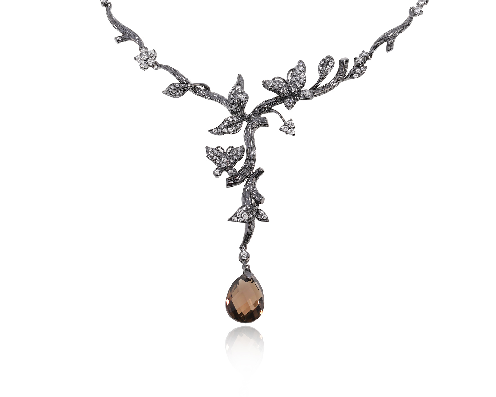 Золотое колье с кварцем 5.30ct и бриллиантами 1.55ct