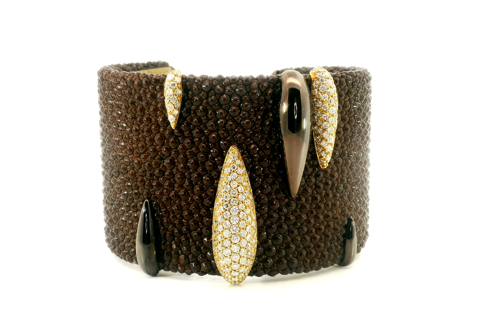 Представляем вашему вниманию оригинальный золотой браслет с кожей ската и бриллиантами 2.66ct от всемирно известного бренда De Grisogono из коллекции Stingray.