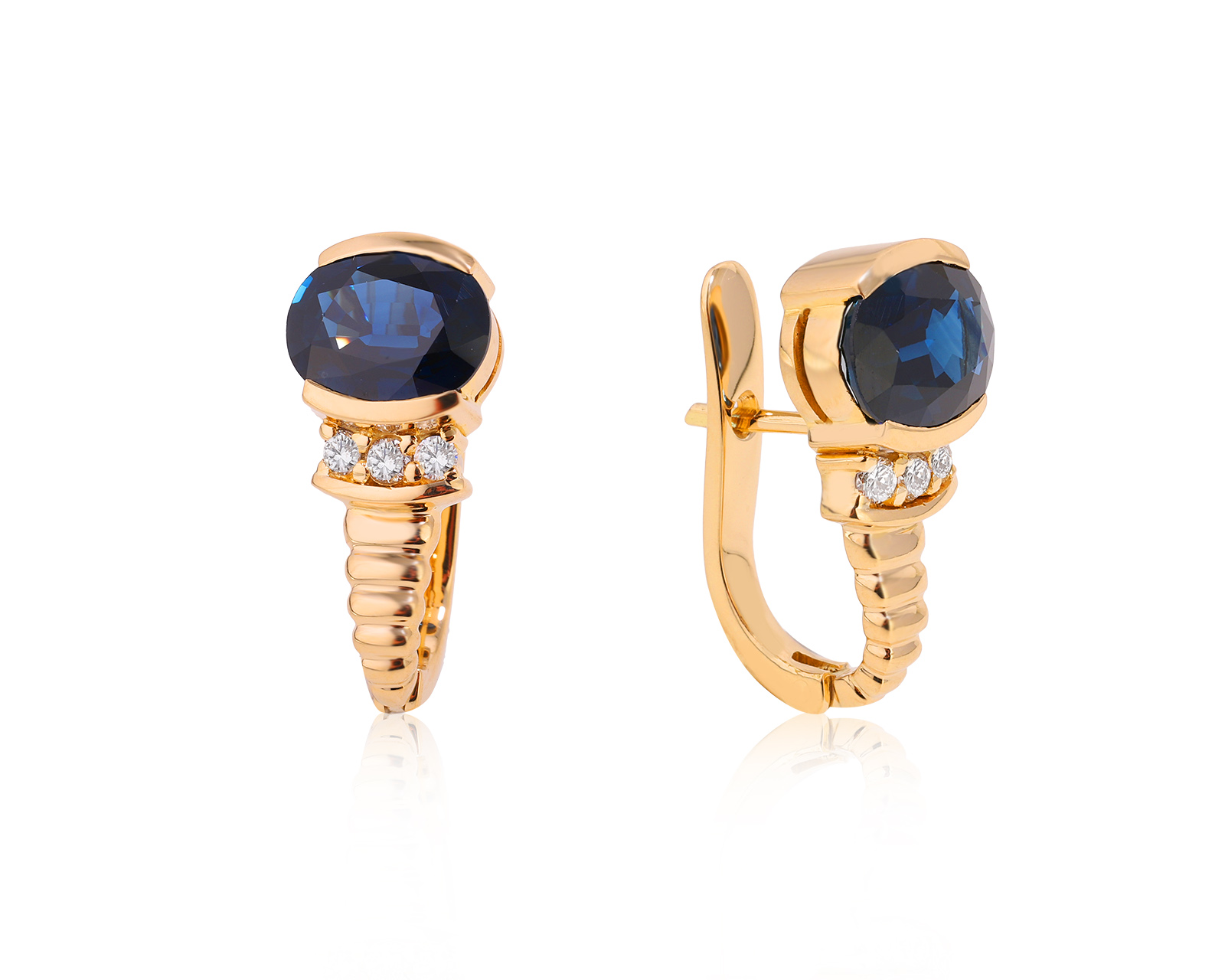 Золотые серьги с сапфирами 8.68ct и бриллиантами 0.20ct