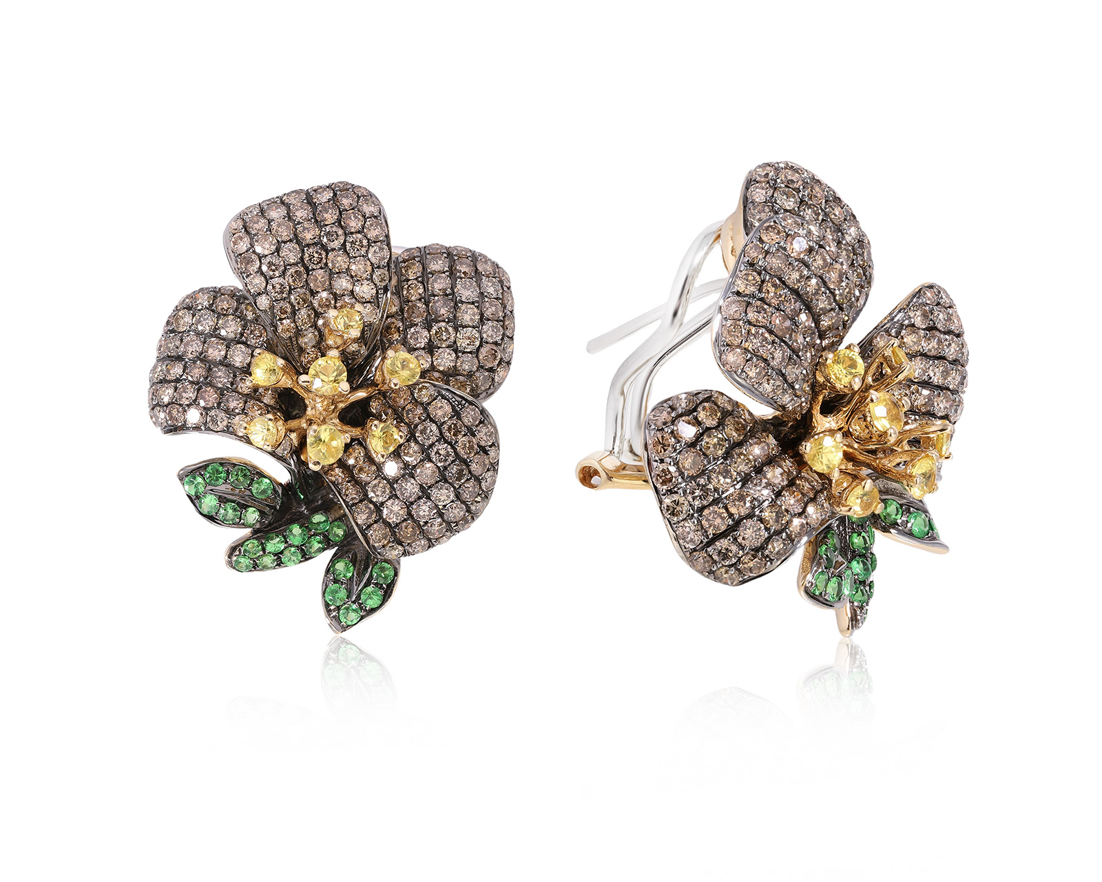 Золотые серьги с бриллиантами 3.35ct и тсаворитами 0.84ct