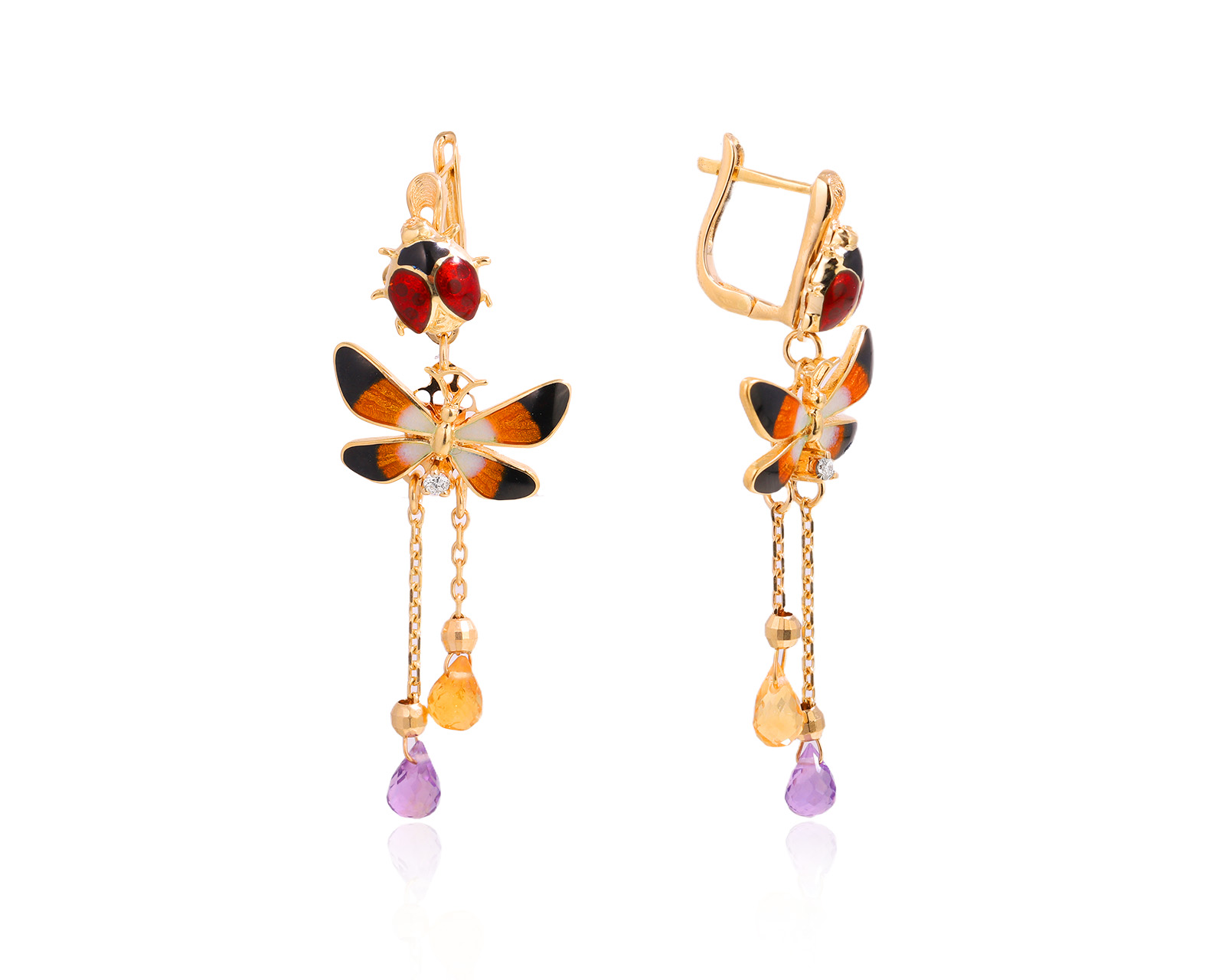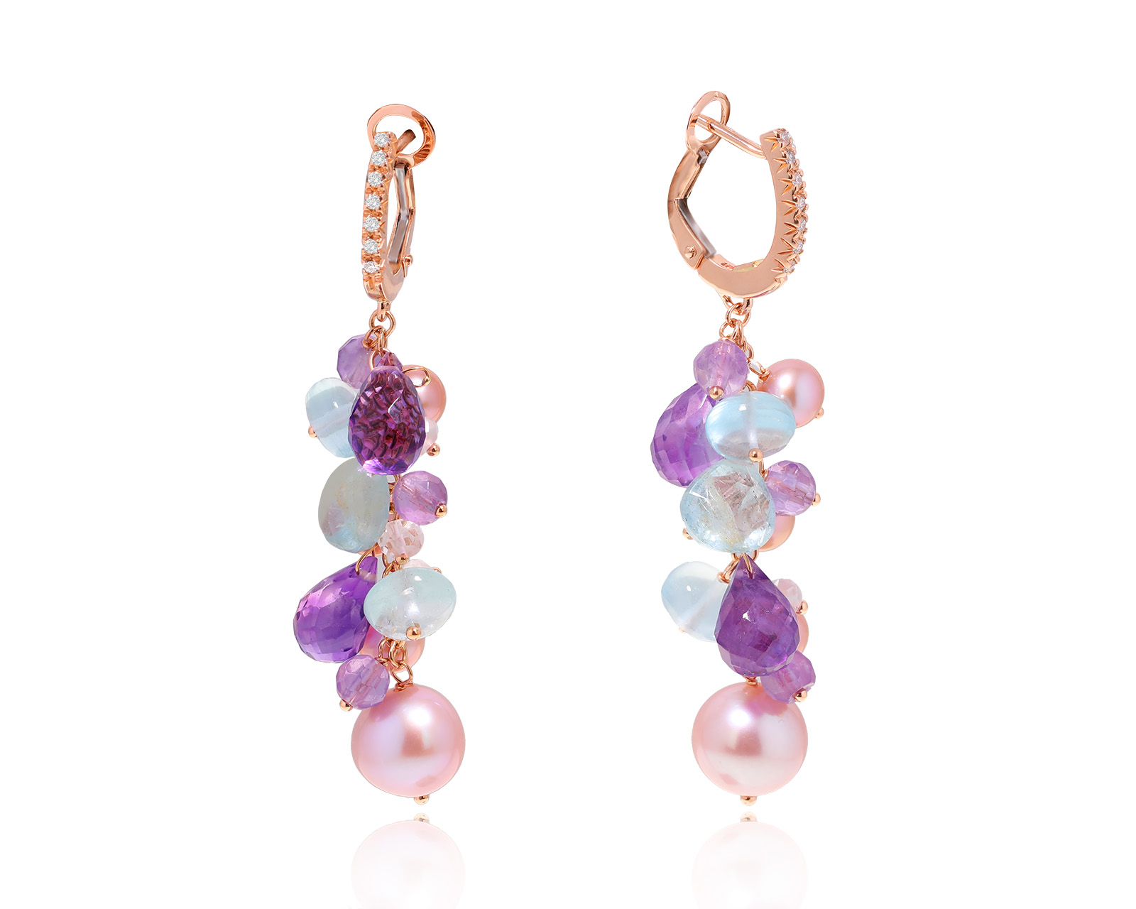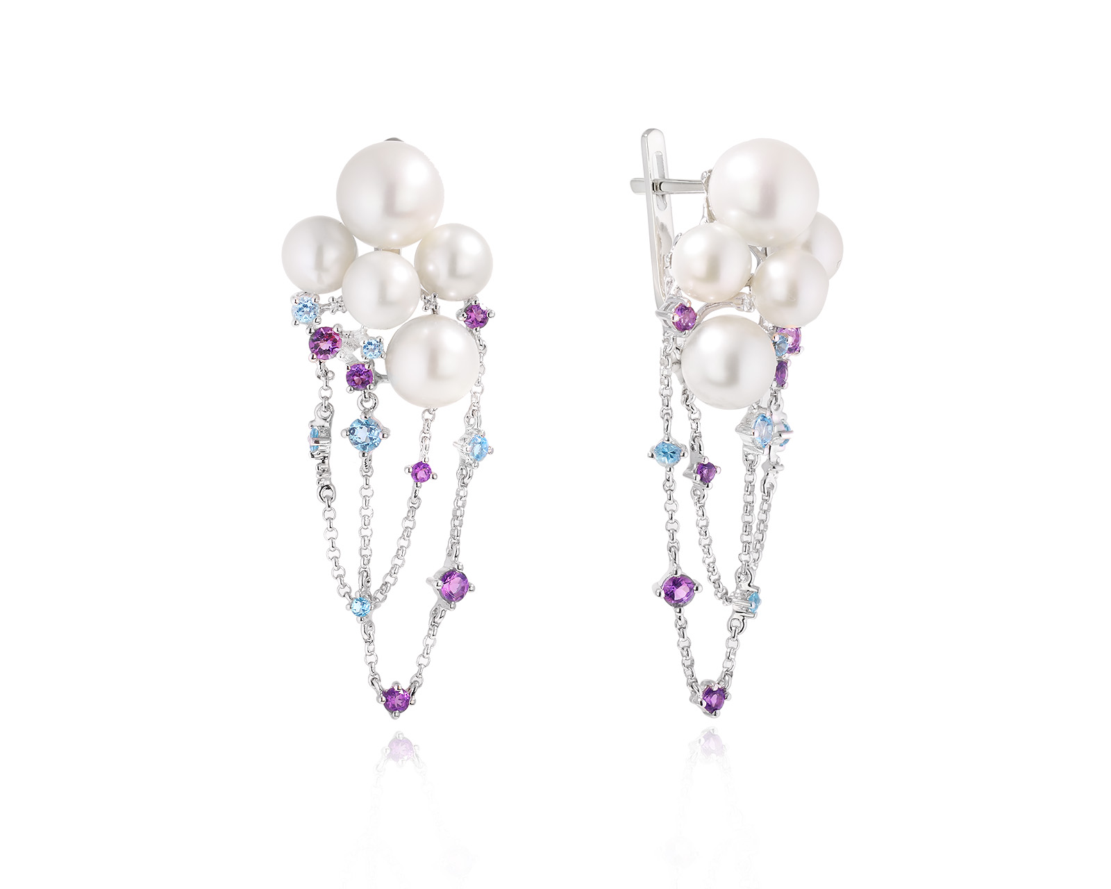 Серьги с аметистом выглядят ярко и нежно, подчеркивают женственность и природную красоту обладательницы. Сияющий натуральный минерал представлен широкой палитрой фиолетовых оттенков – от нежно-розового до глубокого лилового и сиреневого. Наиболее редкими считаются камни зеленого и черного цвета. Дизайнеры сочетают аметист в серьгах с бриллиантами, сапфирами, жемчугом, изумрудами и кварцами.