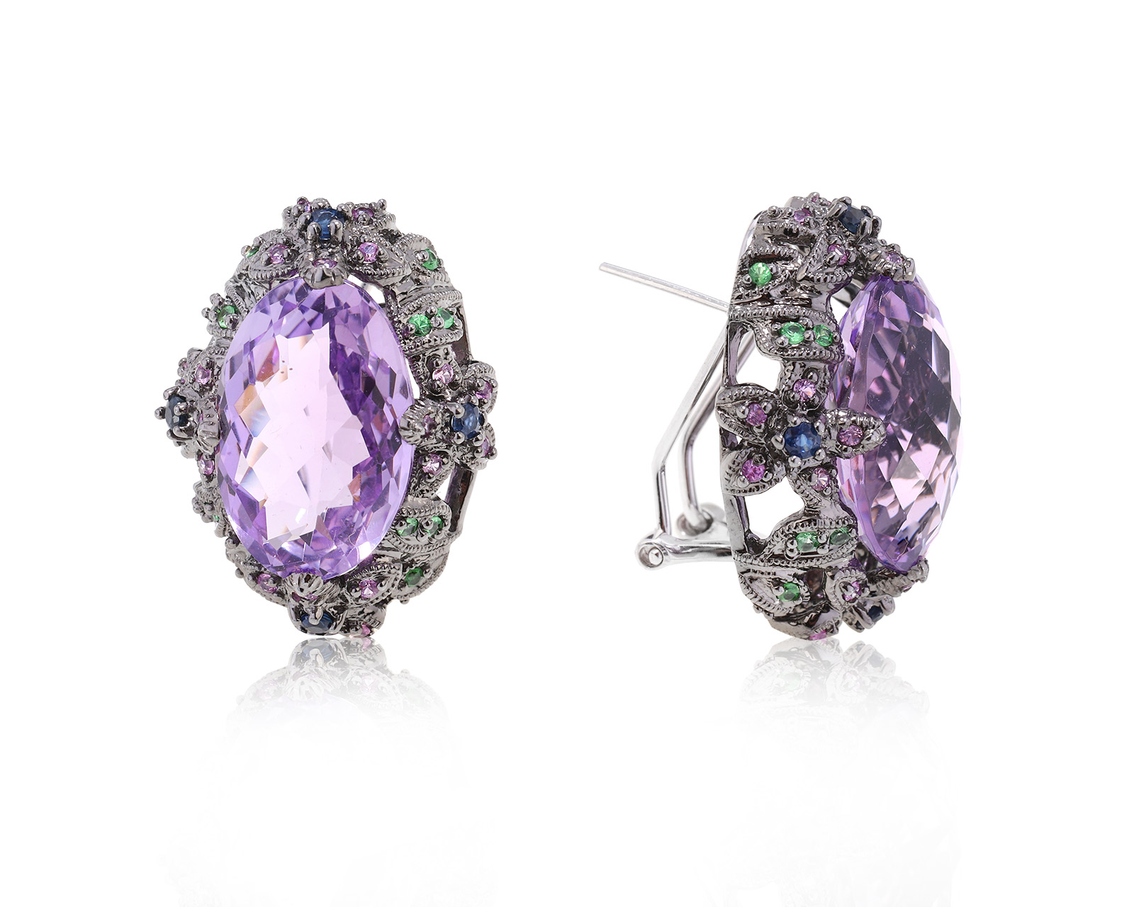 Дизайнеры создают выразительные серьги с аметистом в классическом и современном стиле: