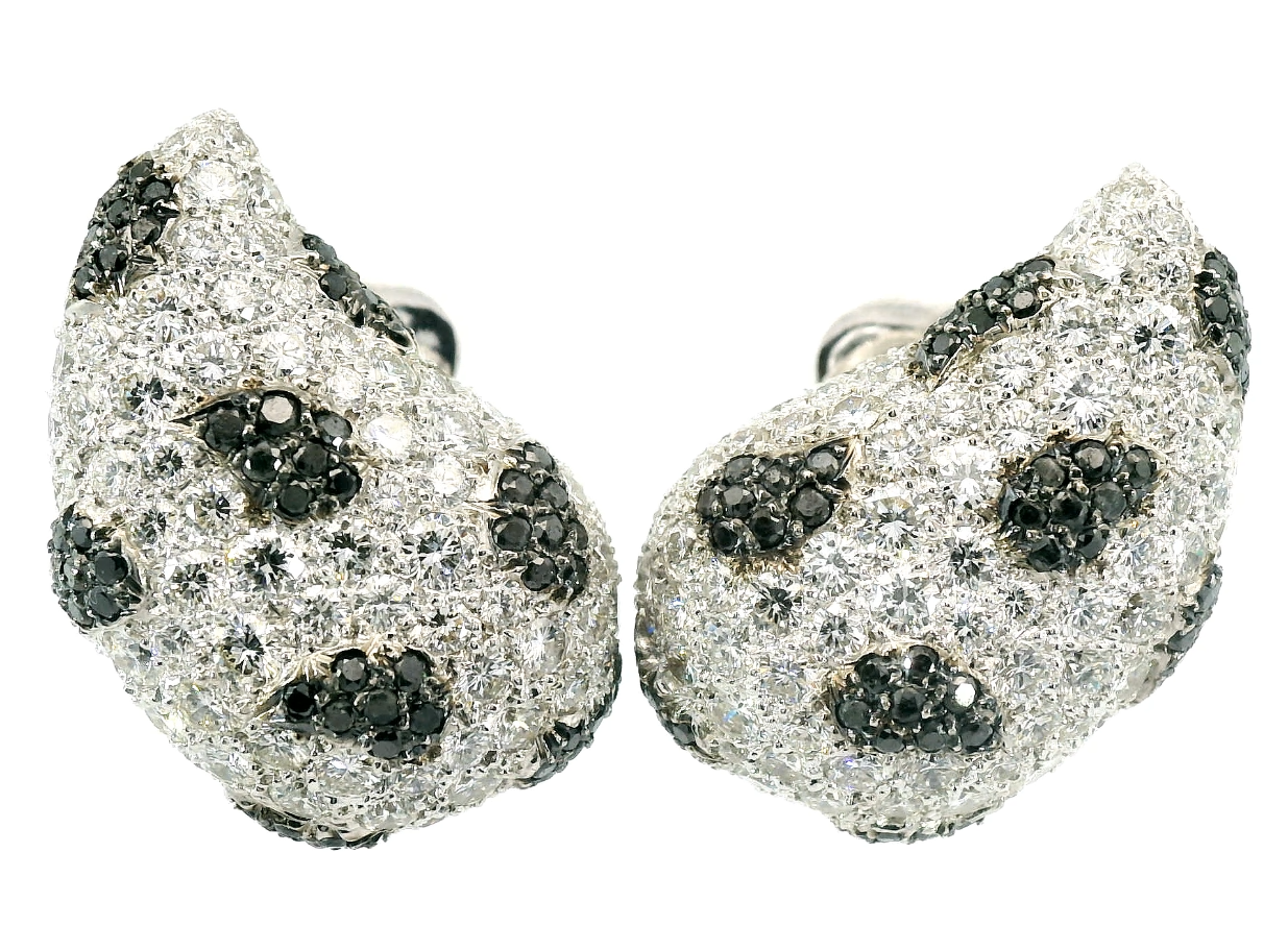 Представляем вашему вниманию оригинальные золотые серьги с белыми 5.10ct и черными 0.90ct бриллиантами от всемирно известного бренда De Grisogono.