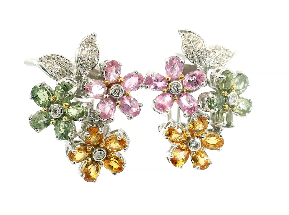 Представляем вашему вниманию коктейльные золотые серьги с бриллиантами 0.30ct и цветными сапфирами 7.04ct.