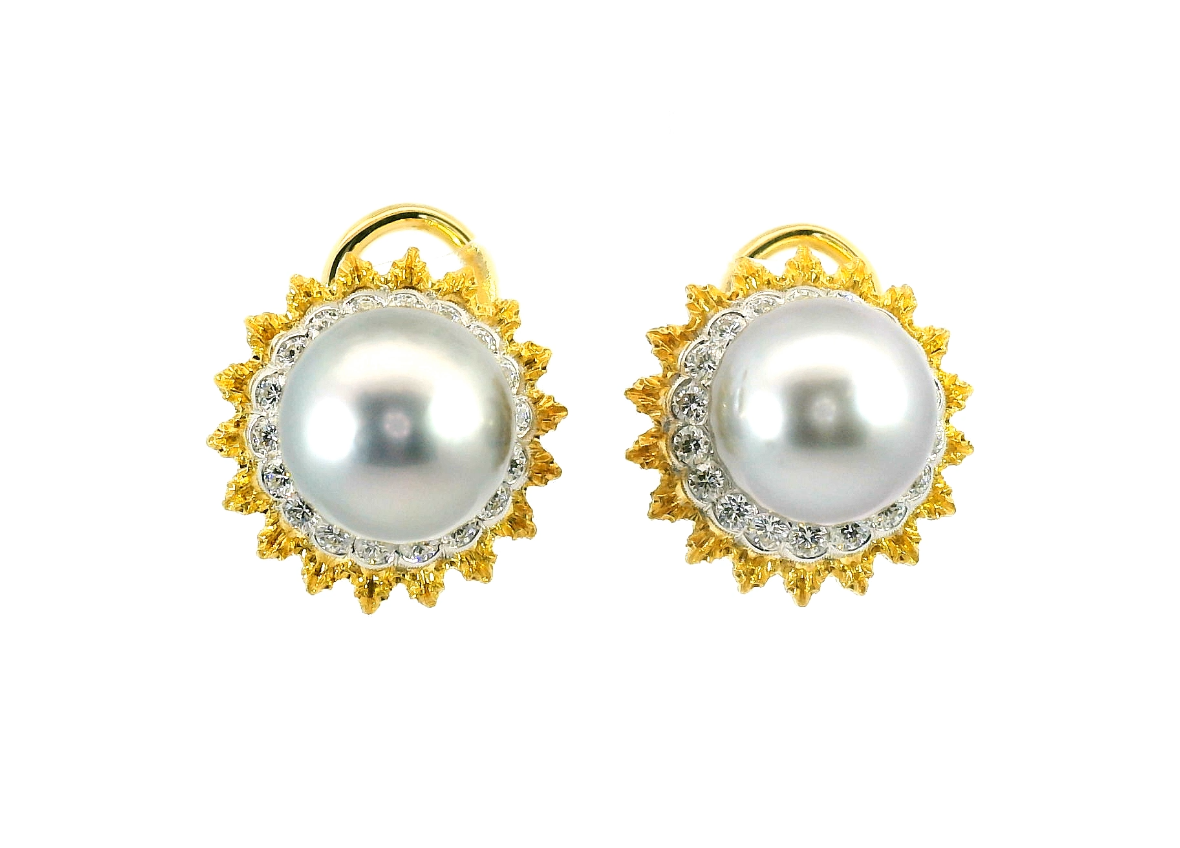 Представляем вашему вниманию оригинальные золотые серьги с серым жемчугом 9.80 мм и бриллиантами 0.63ct от всемирно известного бренда Buccellati.