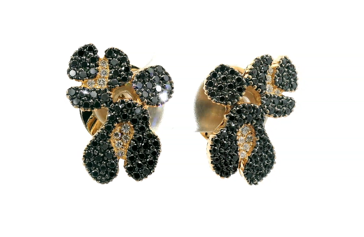 Представляем вашему вниманию оригинальные золотые серьги с бесцветными 0.11ct и черными 1.13ct бриллиантами от всемирно известного бренда H.Stern из коллекции Ancient America.
