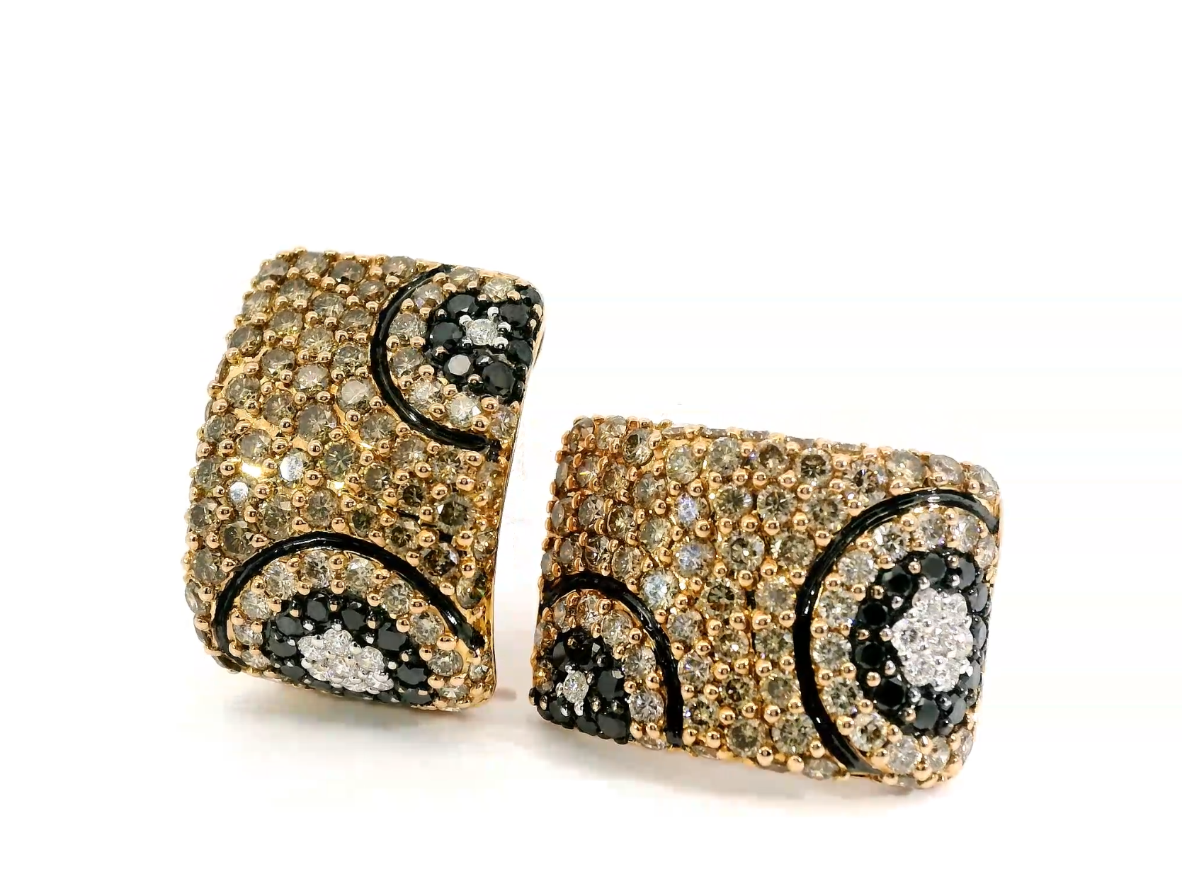 Представляем вашему вниманию оригинальные золотые серьги с коньячными 2.84ct, черными 0.54ct и бесцветными 0.20ct бриллиантами от всемирно известного бренда NOAH.