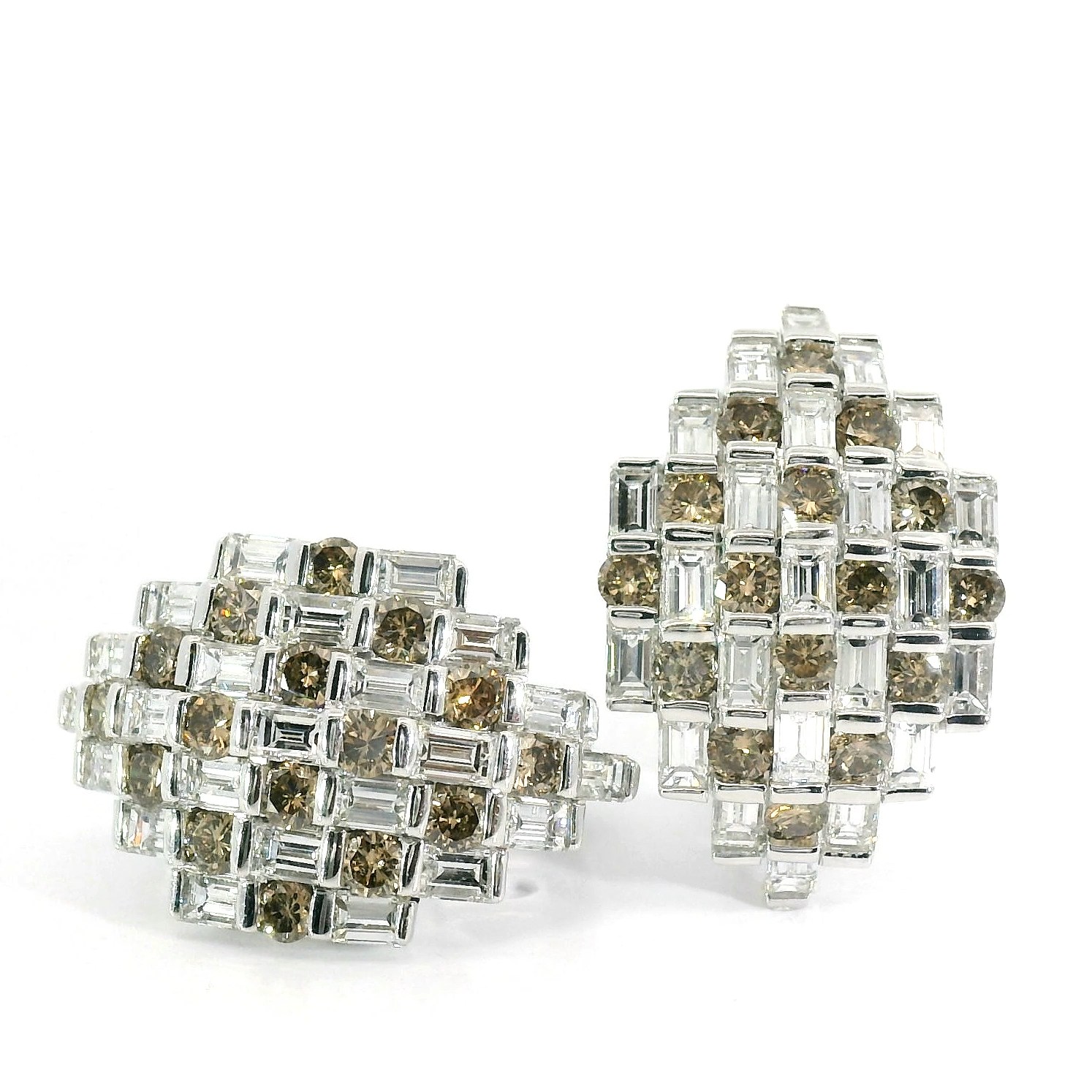 Представляем вашему вниманию оригинальные золотые серьги с бесцветными 2.76ct и коньячными 1.28ct бриллиантами от всемирно известного бренда Damiani.