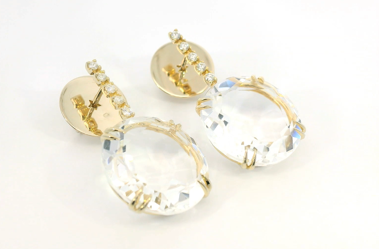 Представляем вашему вниманию оригинальные золотые серьги с горным хрусталем 18.80ct и бриллиантами 0.20ct от всемирно известного бренда H.Stern.