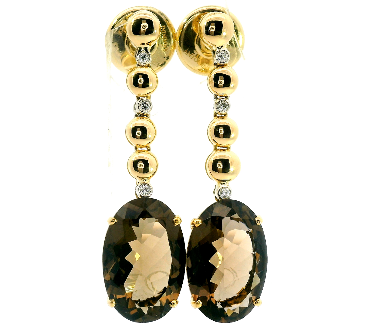 Представляем вашему вниманию оригинальные золотые серьги с дымчатым кварцем 16.20ct и бриллиантами 0.10ct от всемирно известного бренда Antonini.