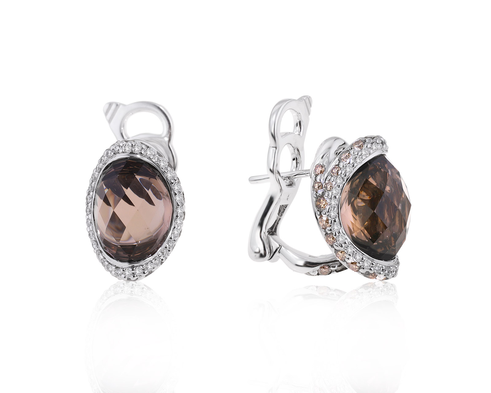 Представляем вашему вниманию оригинальные золотые серьги с розовым кварцем 24.32ct, цветными сапфирами 3.77ct и бриллиантами 0.34ct от всемирно известного бренда Belle Bague (GIM).