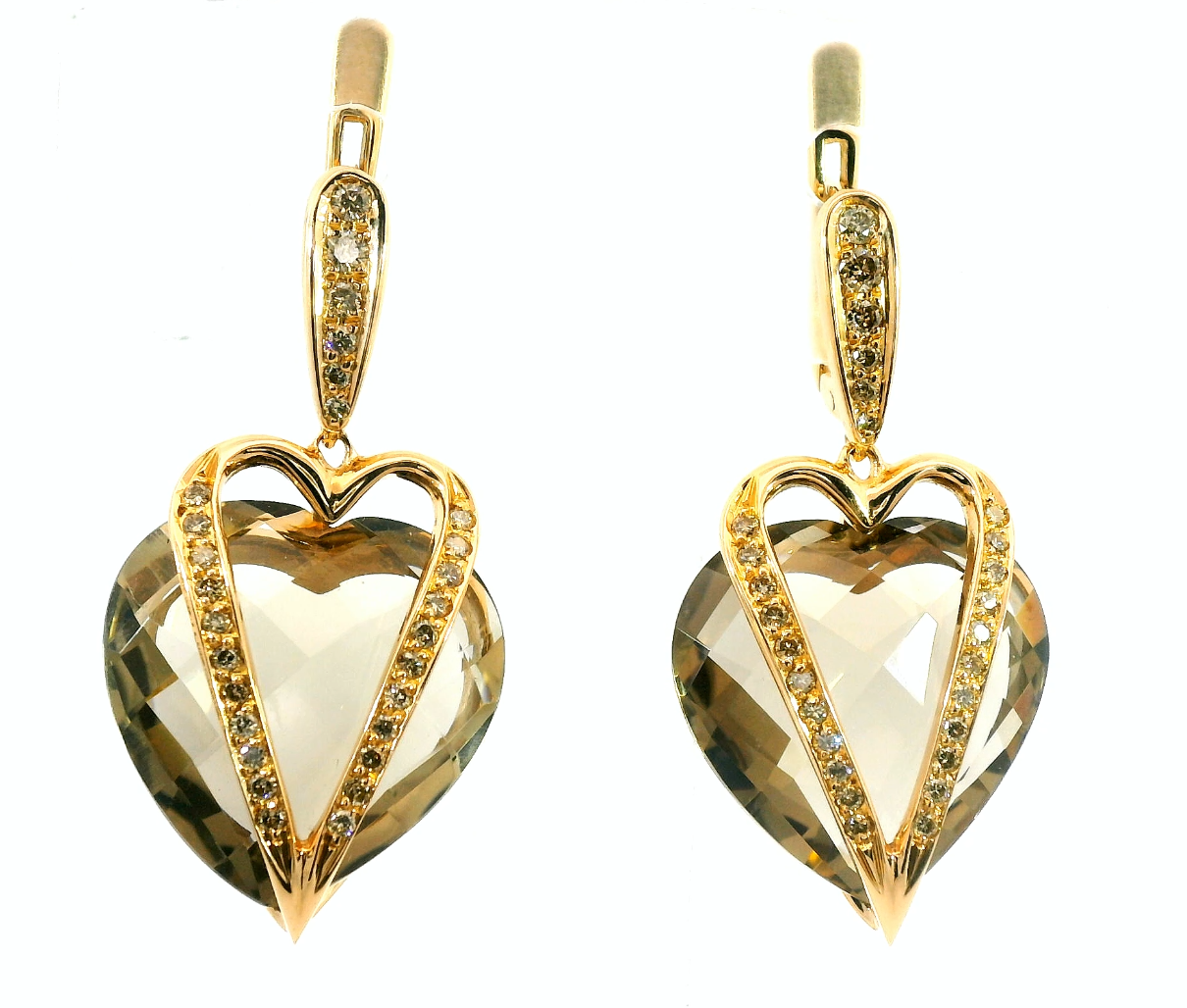 Представляем вашему вниманию оригинальные золотые серьги с дымчатым кварцем 27.40ct и коньячными бриллиантами 0.51ct от всемирно известного бренда Gianni Lazzaro.