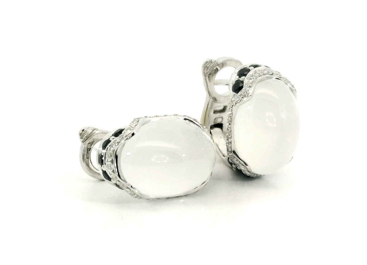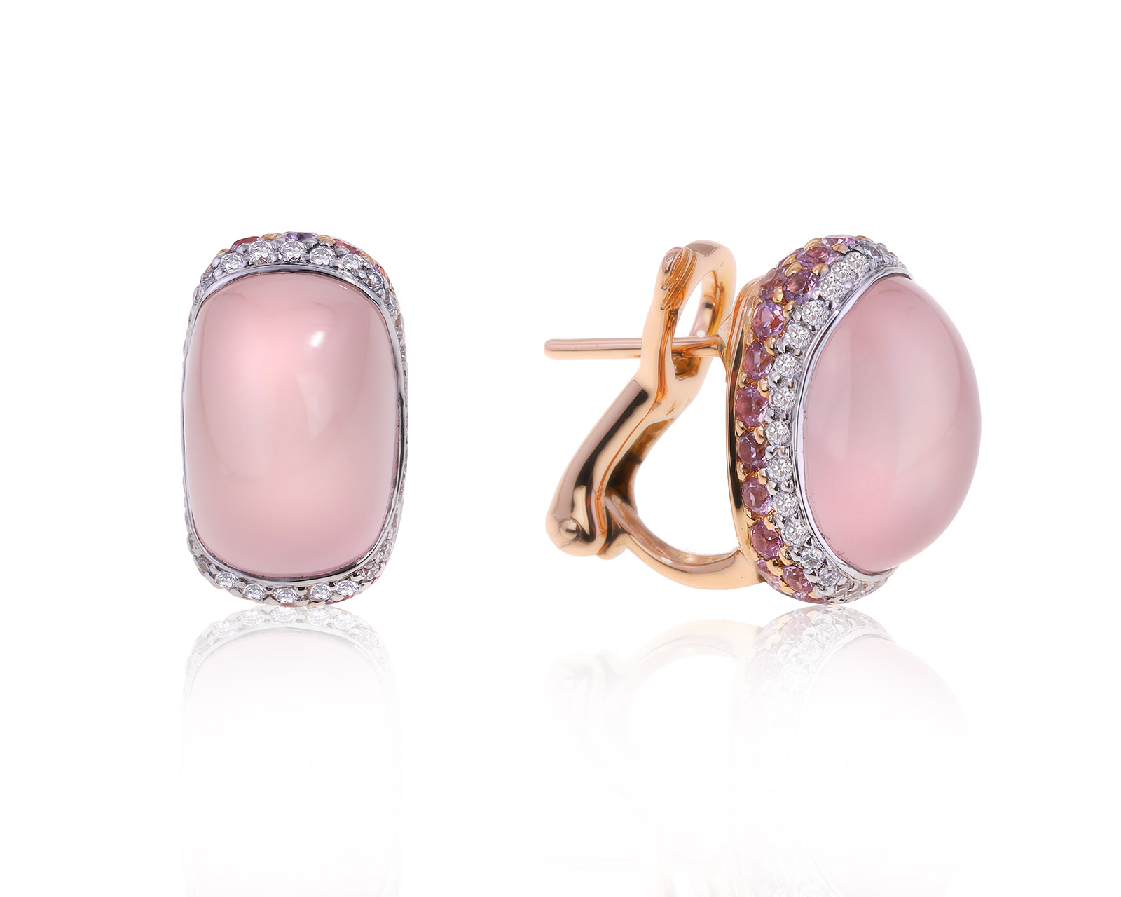 Представляем вашему вниманию оригинальные золотые серьги с кварцем 9.44ct, темно-синими сапфирами 0.66ct и бриллиантами 0.34ct от всемирно известного бренда Belle Bague (GIM).