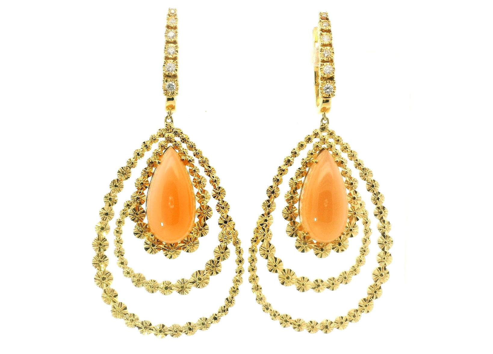 Представляем вашему вниманию оригинальные золотые серьги с розовым лунным камней 18.40ct и бриллиантами 0.29ct от всемирно известного бренда Brumani.