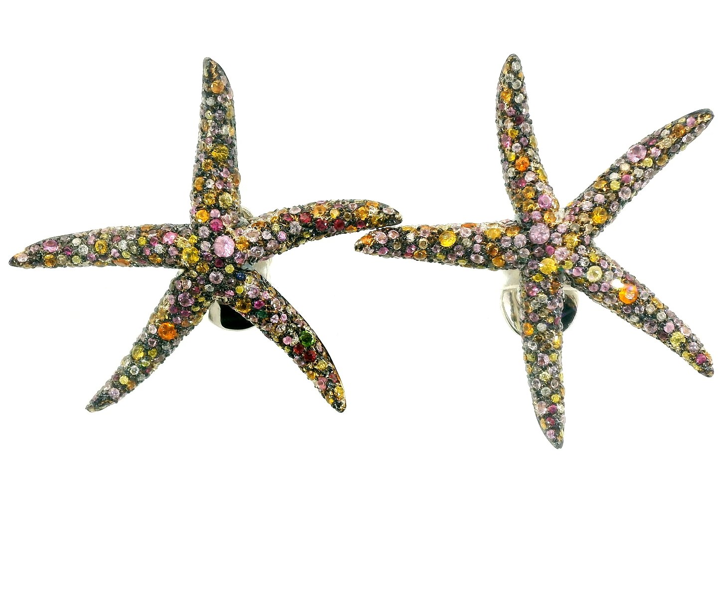 Представляем вашему вниманию оригинальные золотые серьги с цветными сапфирами 13.50ct и бриллиантами 0.40ct от всемирно известного бренда Paolo Piovan из коллекции Starfish.