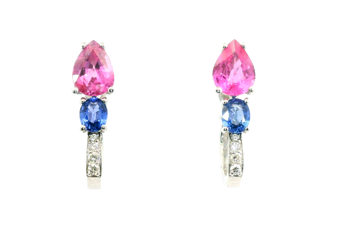 Представляем вашему вниманию оригинальные золотые серьги с розовыми 2.60ct и синими 0.92ct сапфирами и бриллиантами 0.12ct от всемирно известного бренда Arte Diore.
